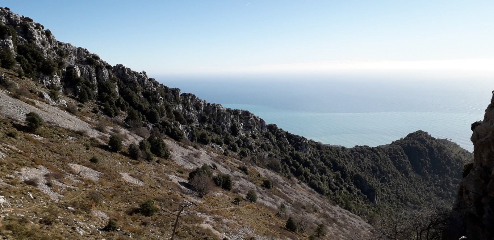 Superbe rando accomplie le 14/12/19 au départ du parking de Castellar (Chapelle St-Sébastien) avec sommets successifs du Roc d'Orméa et du Mont Carpano sur frontière franco-italienne. Points remarquables sur l'itinéraire : La chapelle St Bernard, le plateau de Mourga, les ruines du Vieux Castellar, le Plan du Lion et bien évidemment le Roc d'Orméa qui constitue le clou de cette balade. Son approche depuis le col du Berceau, en surplomb de Menton est splendide mais le piton rocheux est de toute beauté. ll surclasse le mont Carpano en offrant une vue sublime sur la Riviera. Magnifique panorama à nul autre pareil pour l'ensemble des massifs avoisinants. A noter que la descente du Mont Carpano jusqu'à la balise 413 est malaisée sur un chemin bien tracé mais avec une pente accentuée sans difficulté.En conclusion : rando vivement recommandée ! Vue sommitale époustouflante !