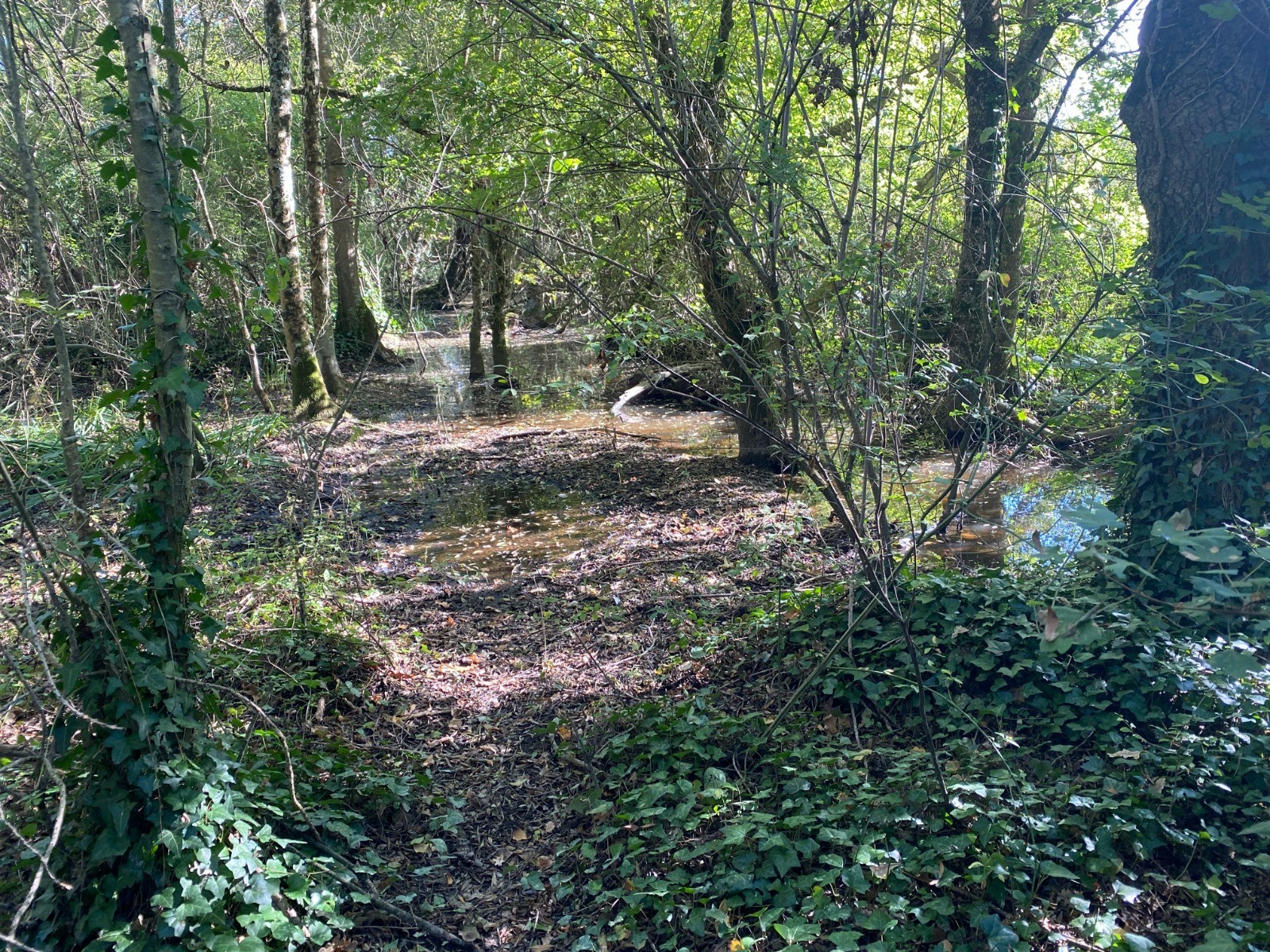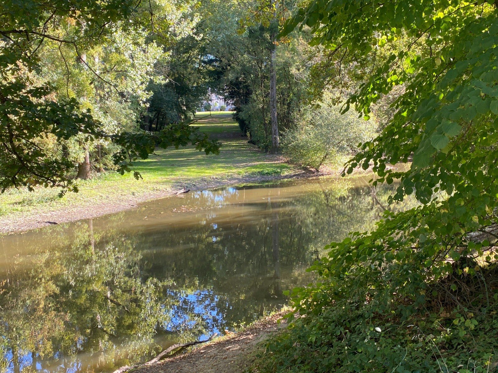 Depuis ce point, le sentier longe la rivière, offrant de belles vues sur ses méandres tranquilles, bordés de saules et d’aulnes.