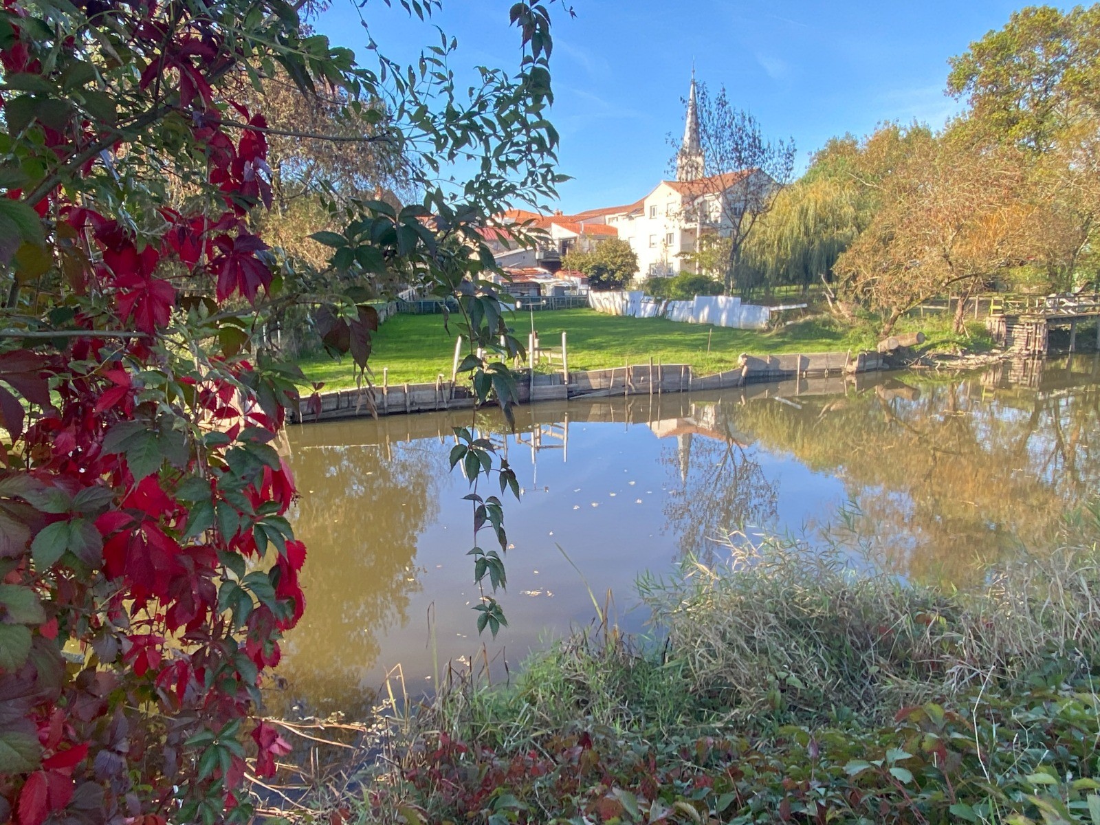 En suivant le chemin, on rejoint le marais de l’Île, espace naturel humide préservé.