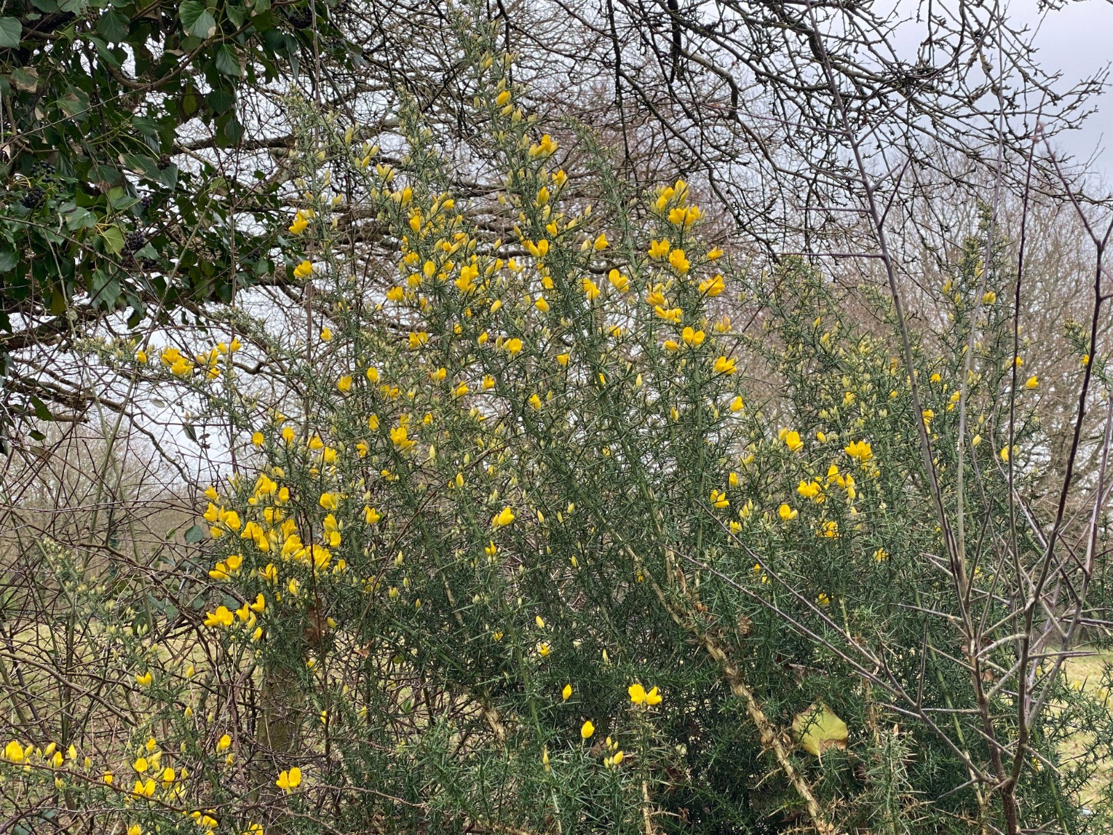 Parmi les plantes nous voyons de temps en temps, dans les haies, une fleur jaune typique de la Bretagne : des ajoncs ( arbuste épineux ) à ne pas confondre avec les genêts ( sans épine et fleurissant au printemps ). ( photos no 3 & 7 )