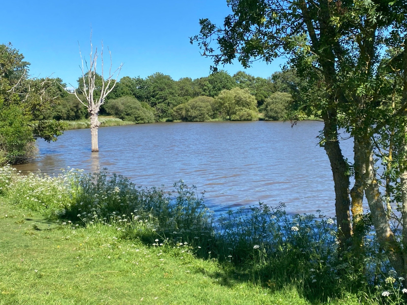 Après le lieu-dit "Nombreuil" nous longeons les trois étangs aménagés pour la pêche, la promenade, la détente sur plus de deux kilomètres.