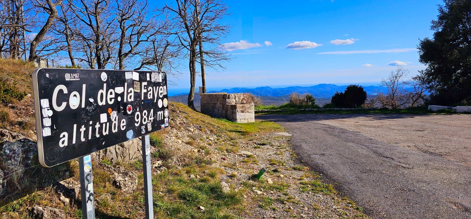 Départ depuis vaste parking du col de la Faye (982 m) en bordure de la Route Napoléon (D 6085), commune de Saint-Vallier-de-Thiey.