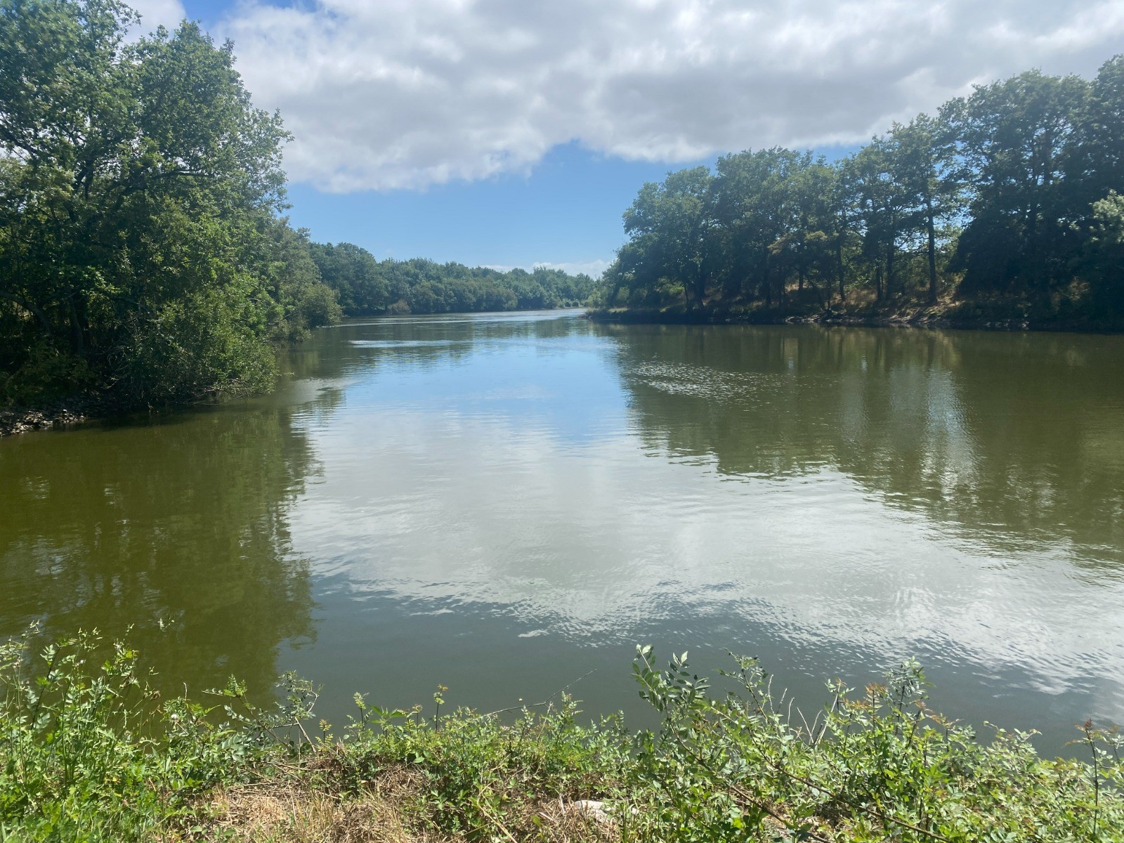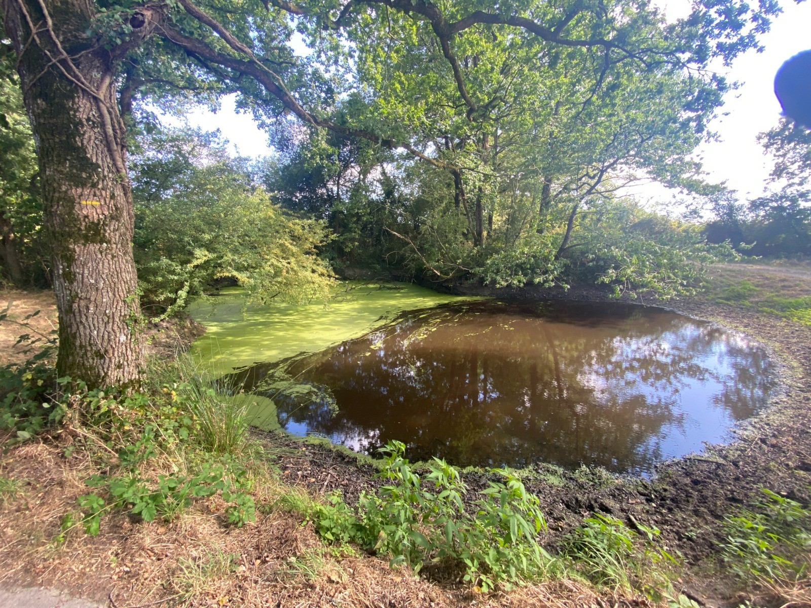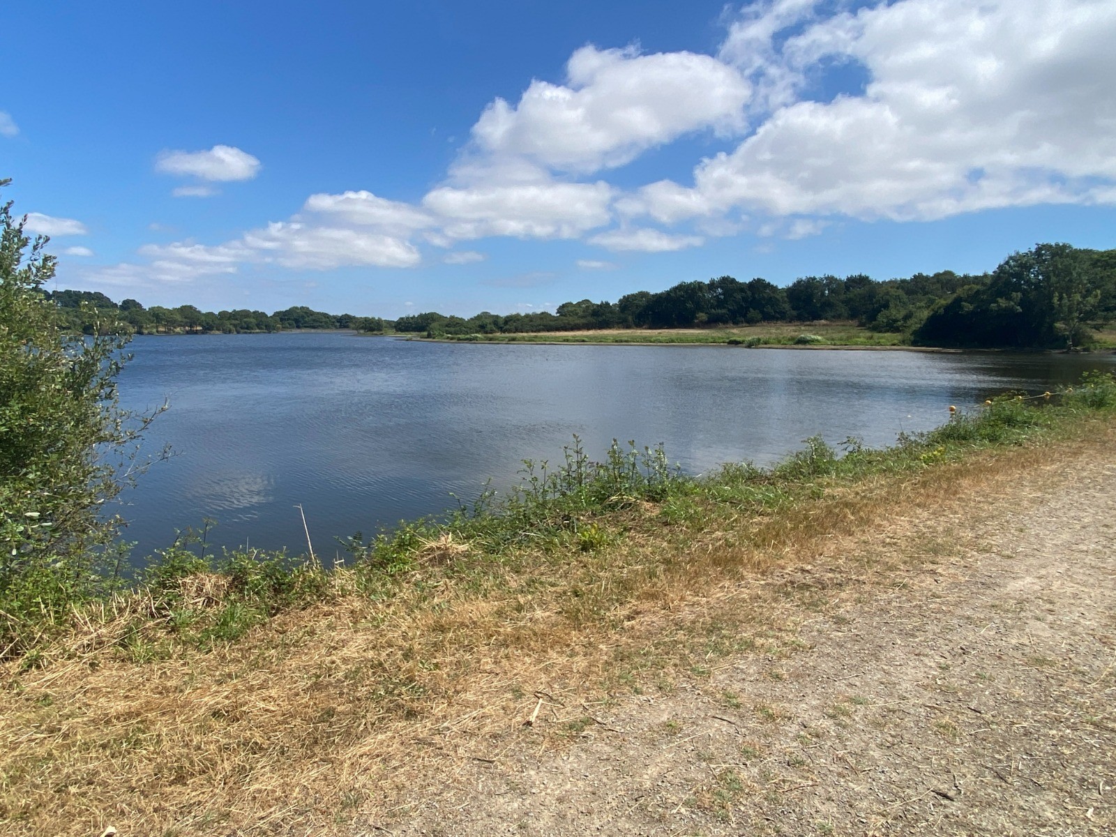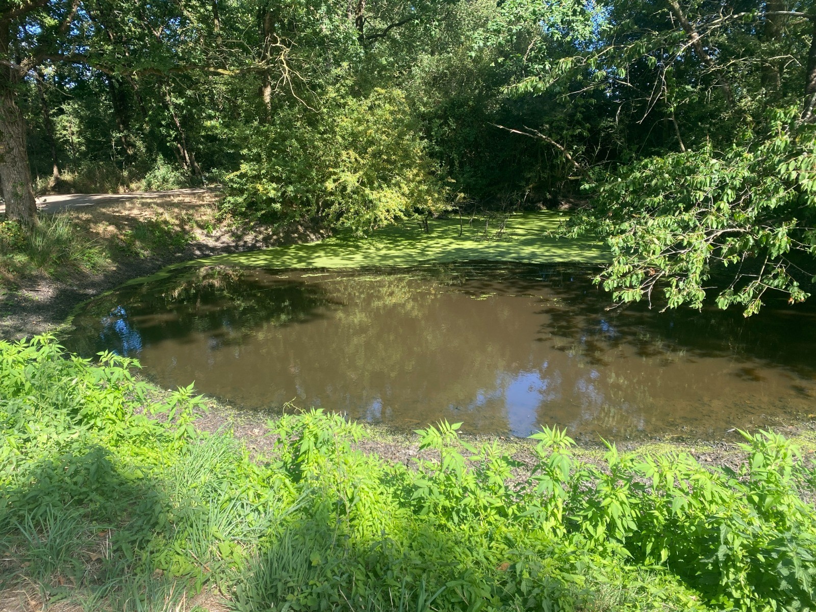 Quelques mètres et vous voilà au bord de l'étang qu'Il est possible de traverser à gué en quatre points, au centre dans l'axe de La Rinais, au nord, à l'ouest et au sud.