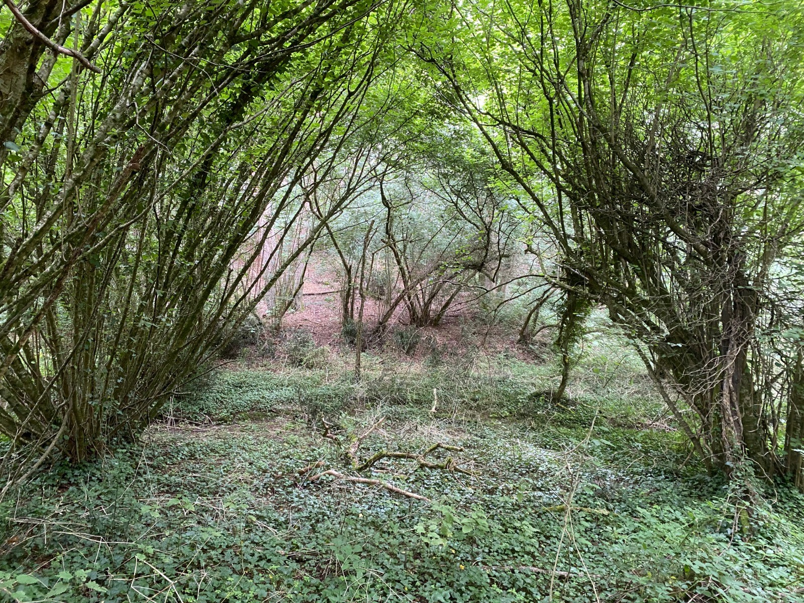 Vous marchez dans un tunnel ( photo 5 ) de noisetiers et longez un ruisseau à sec.
