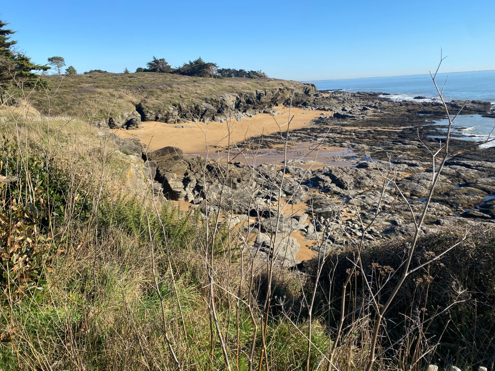 Après avoir traversé les landes de Jade nous arrivons kilomètre 6 sur le sentier des douaniers.