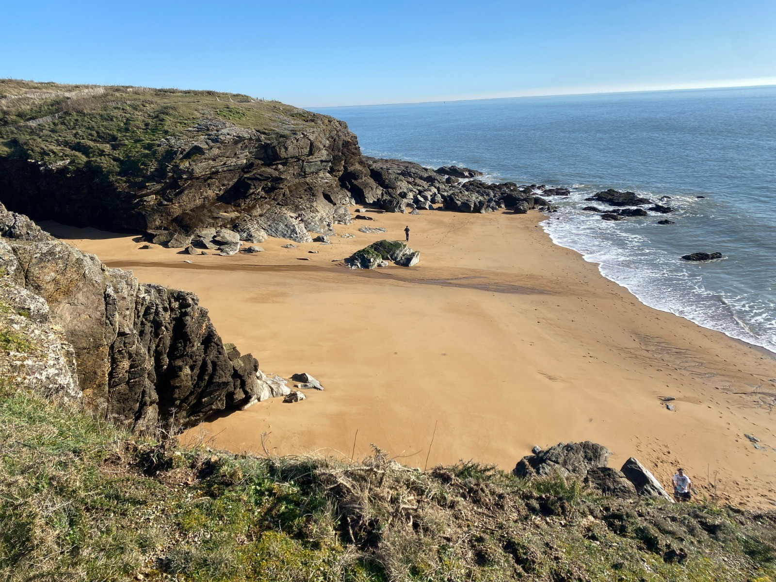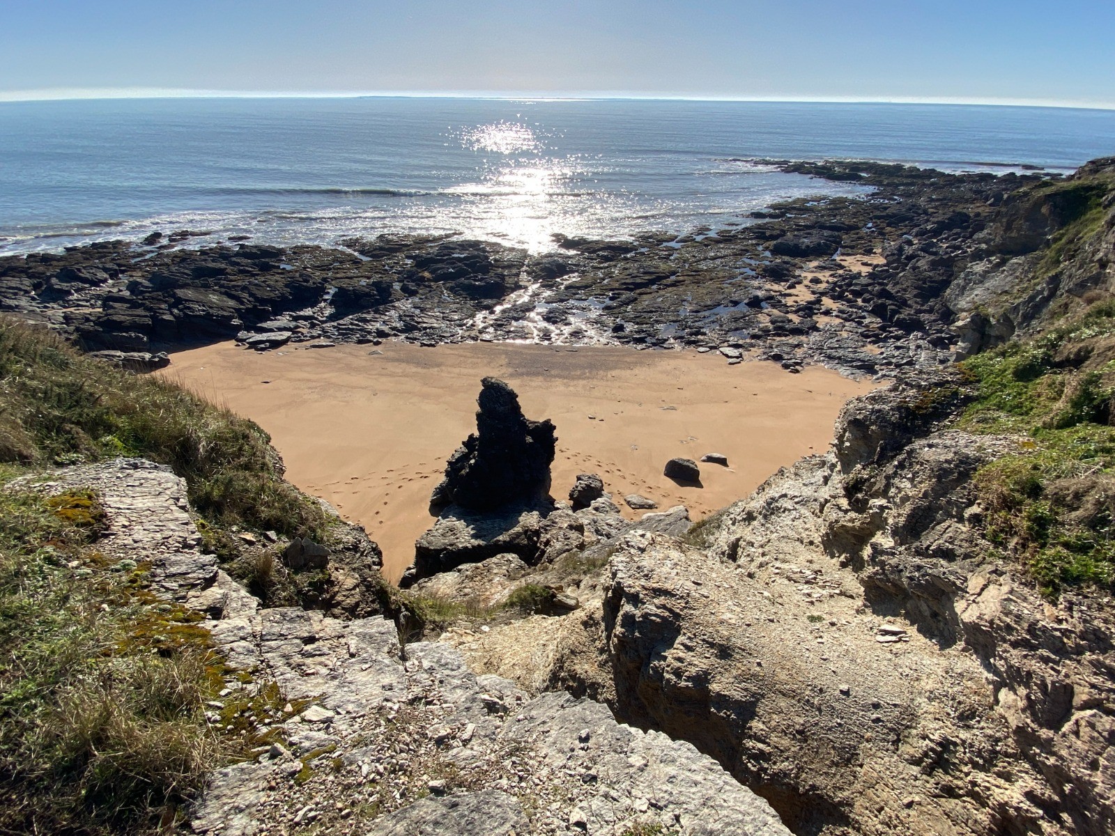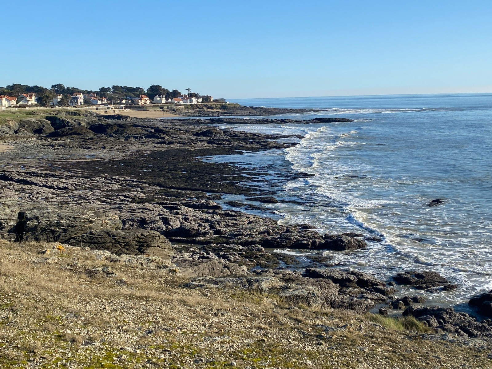 On y pose ses pas d'abord face à l'Île de Noirmoutier, puis passée la pointe, c'est la Côte d'Amour qui barre l'horizon.