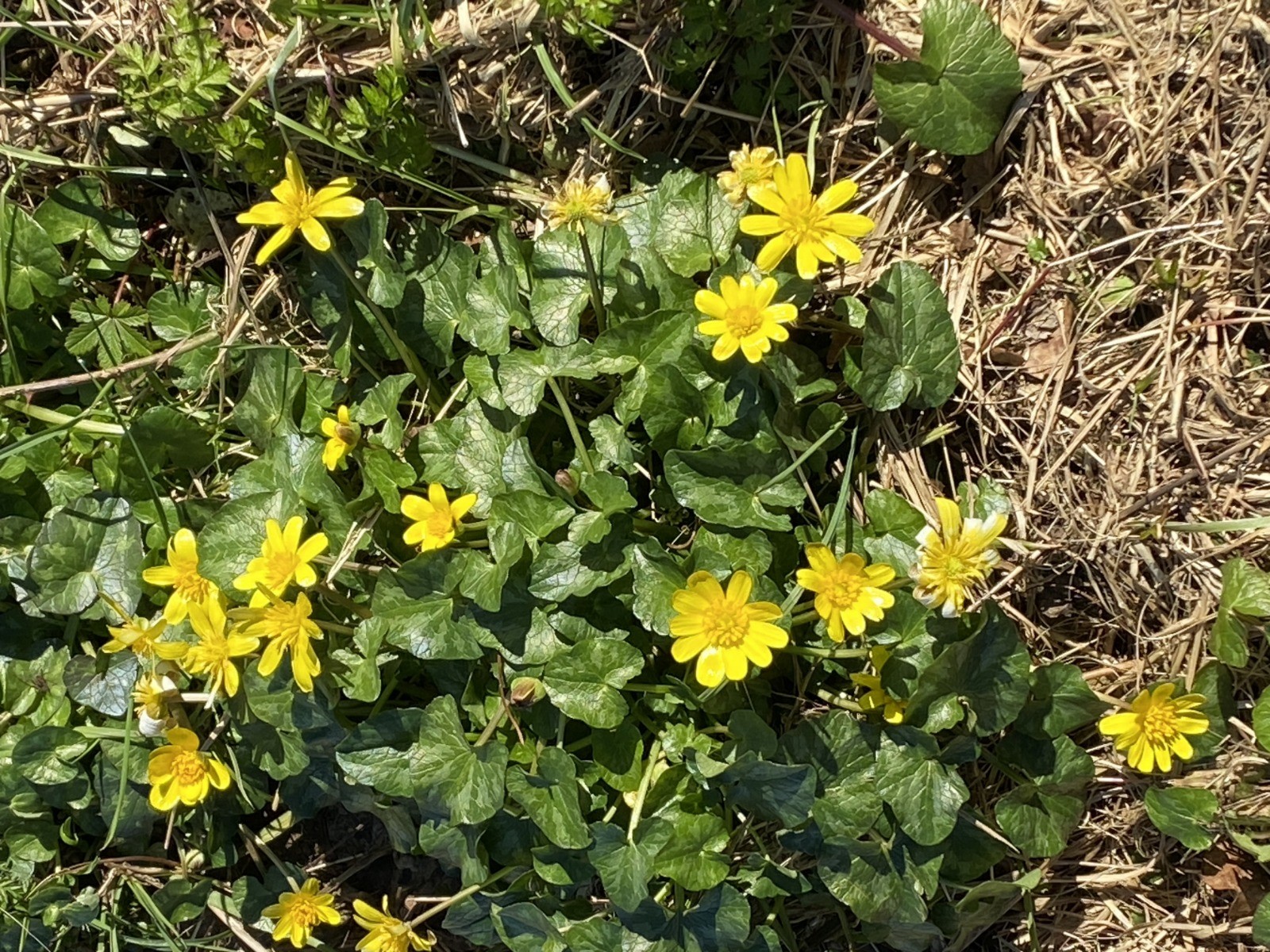 Les landes sont bien sûr envahies par les ajoncs ( photo no 5 ) et les fossés humides laissent apparaître les premiers ficaires ( photo no 8 ) comme autant de petits soleils végétaux.