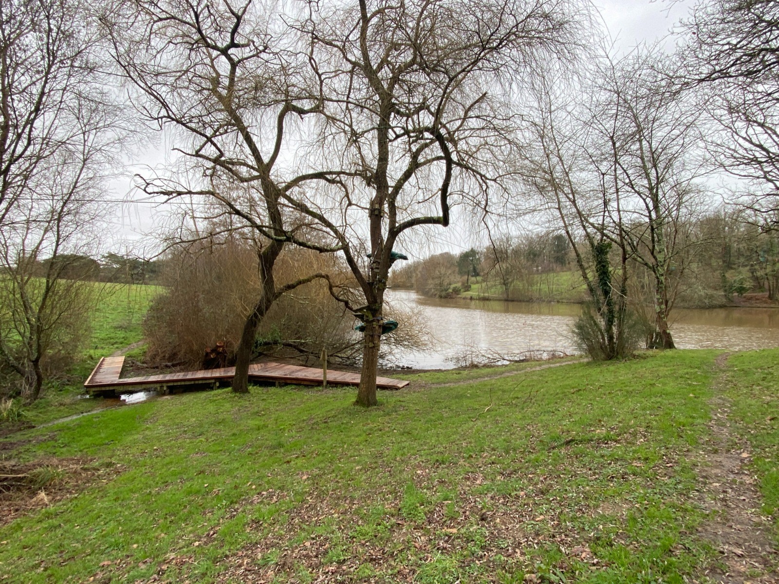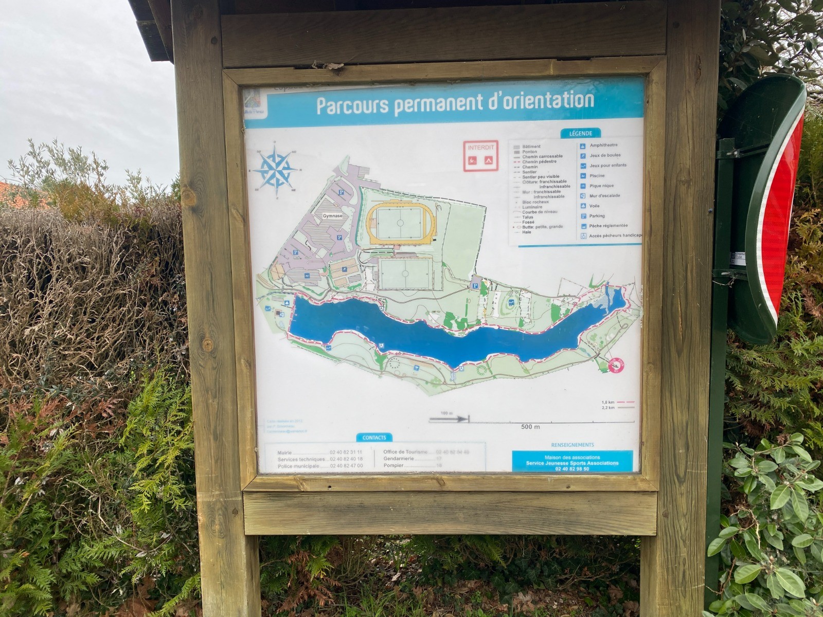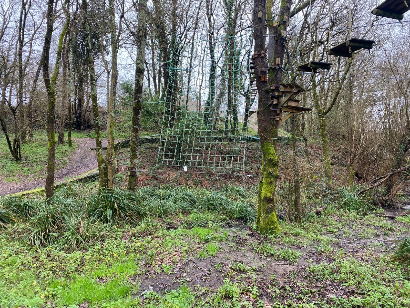 Kilomètre 4 nous voilà queue de l'étang avec le parc d’aventure et accrobranche ( Pornic Aventure ) en forêt situé, autour et au-dessus de l’étang.
