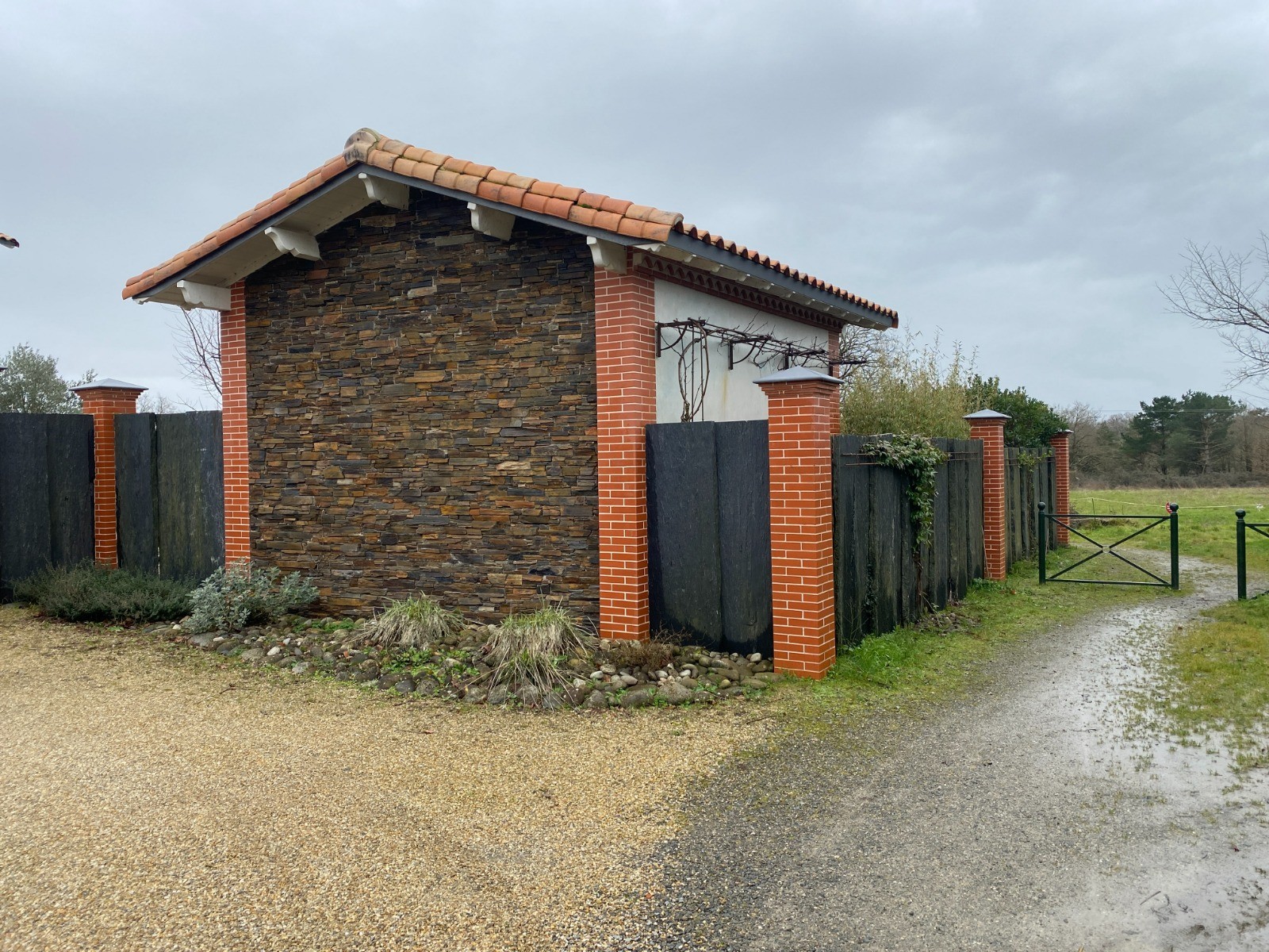 Un très beau pavillon se dresse là, comme pour surveiller l’entrée de ce chemin, avec des murs faits de grandes pierres d’ardoise. ( photo 7 )