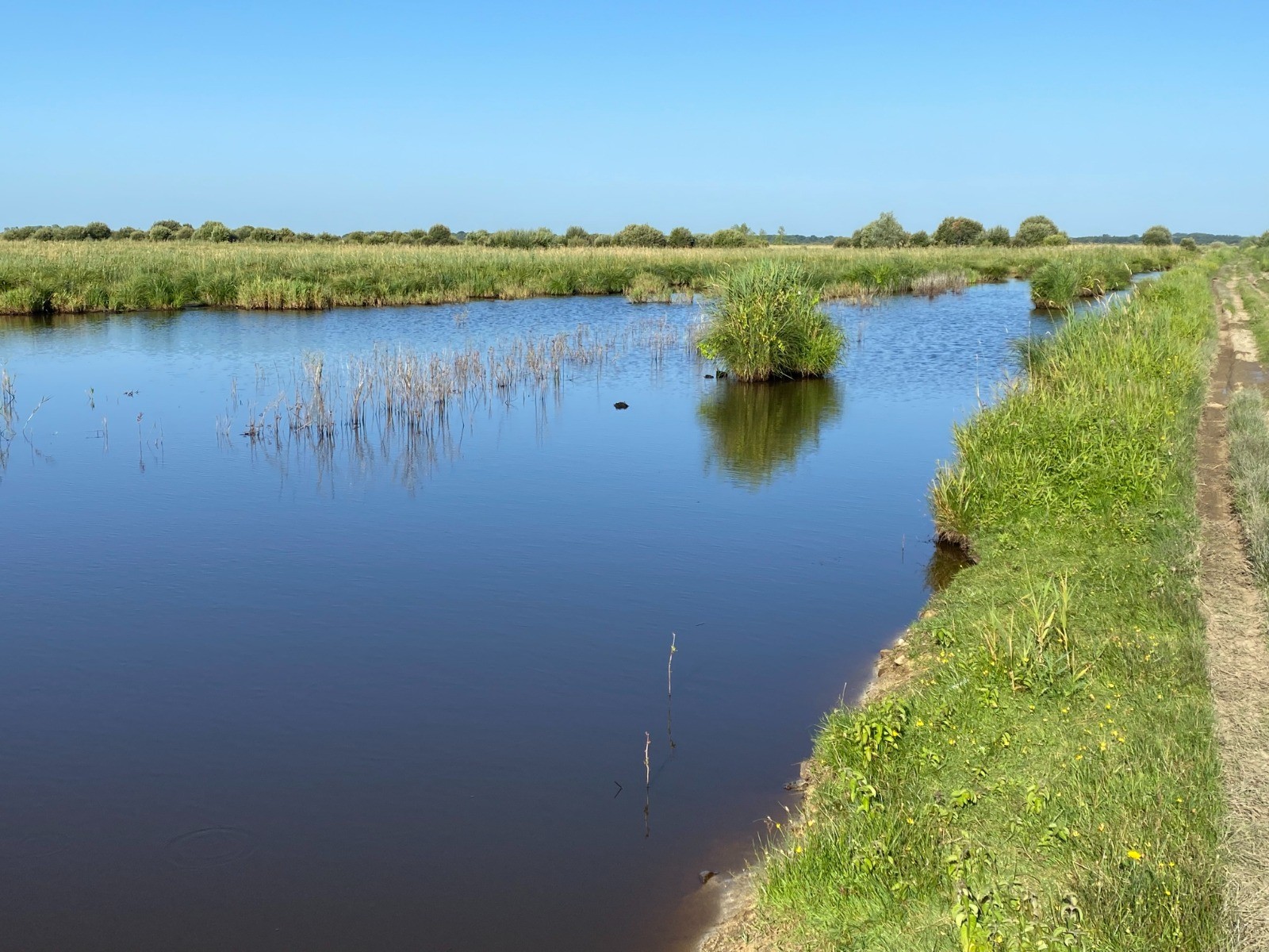 Mais ce n'est rien... un peu plus loin, le chemin qui longe le canal Sainte Reine est beaucoup plus boueux ( tourbe ) et certains passages sont bien inondés.