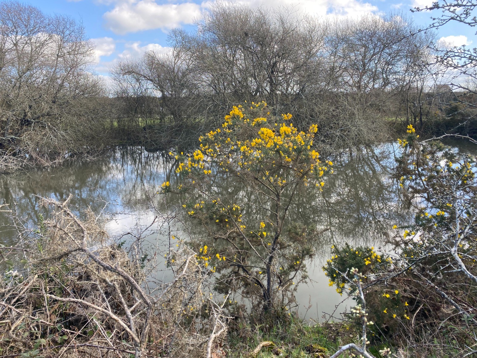 Les nombreux ajoncs apportent un peu de gaieté au paysage.