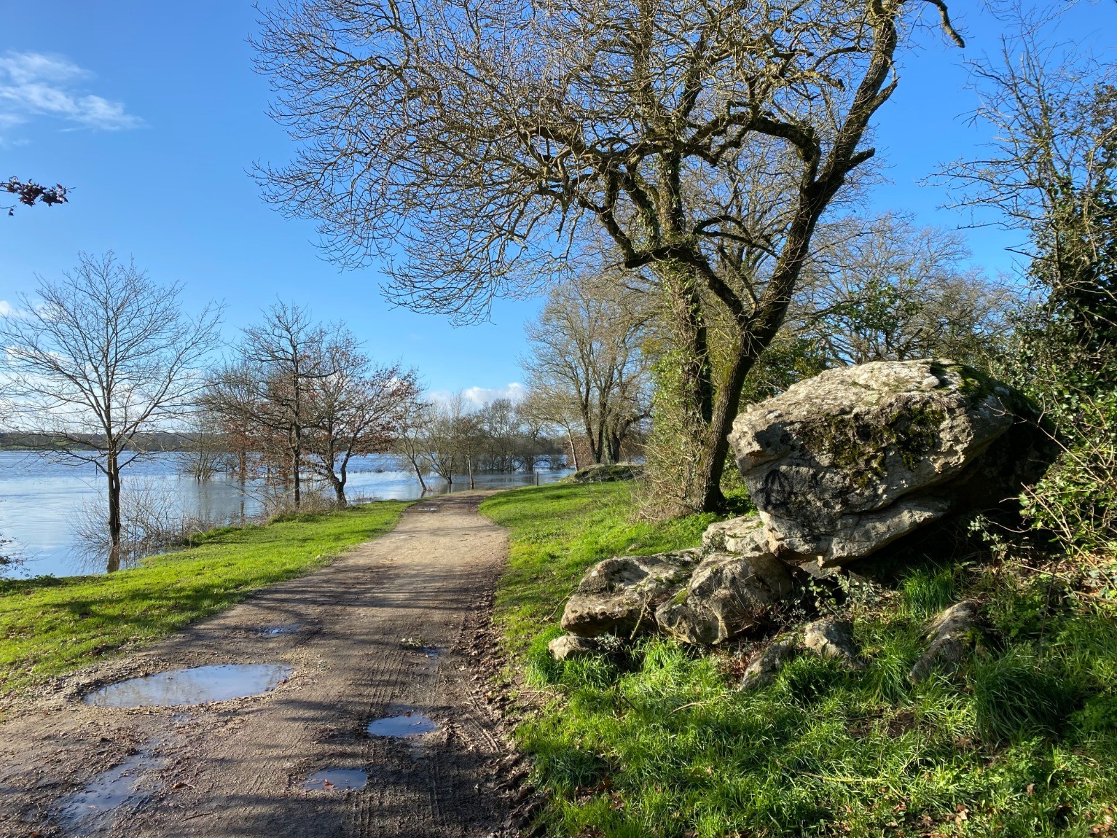 Nous arpentons les rives de l'Acheneau où nous avons la chance de croiser la route de la Pierre Tremblante, vestige de l'Homme de Néandertal.