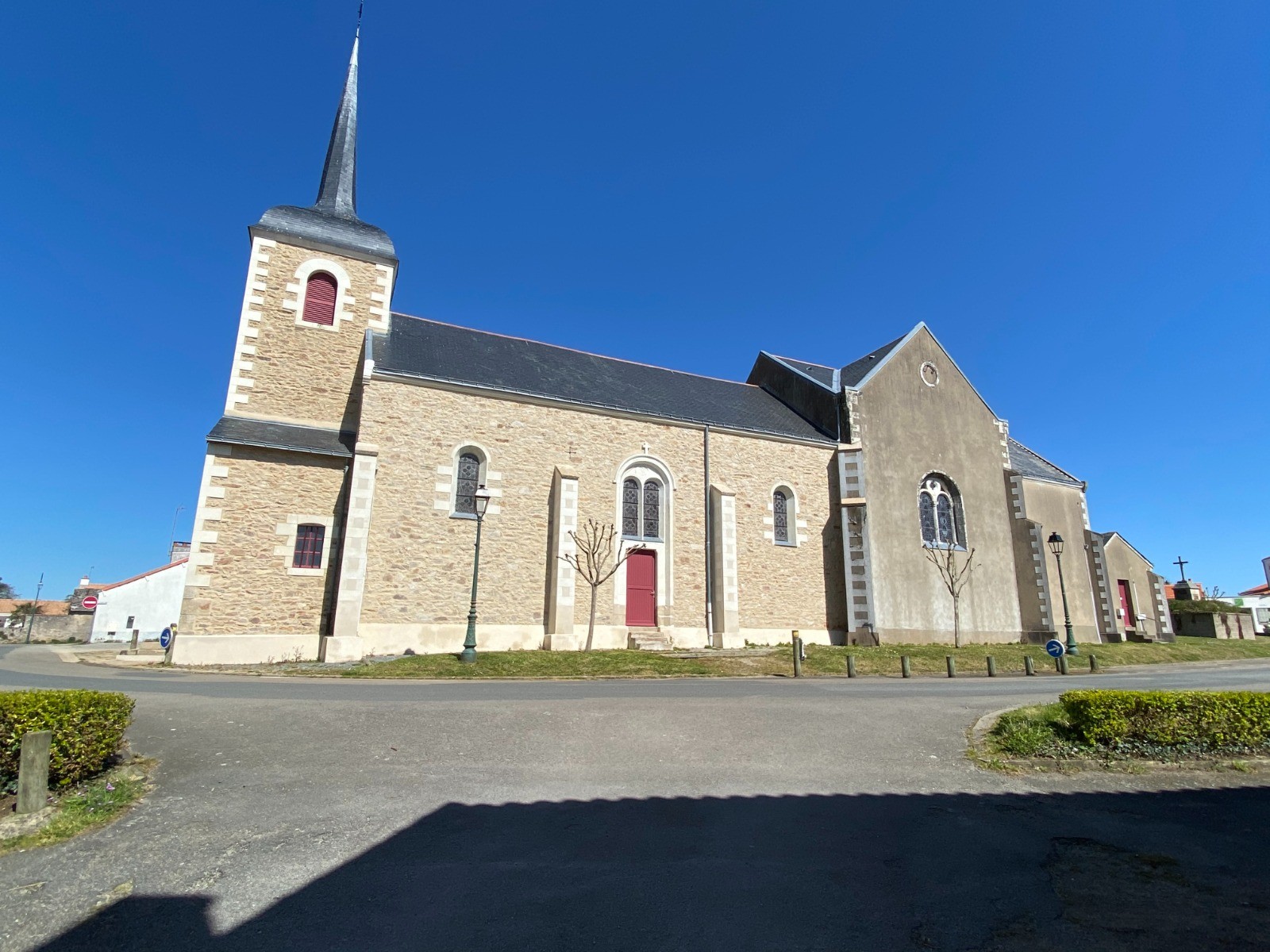Dans le centre bourg de Cheix-en-Retz, garez-vous près de l'imposante église Saint-Martin, construite en 1857 par l'architecte Chenantais.