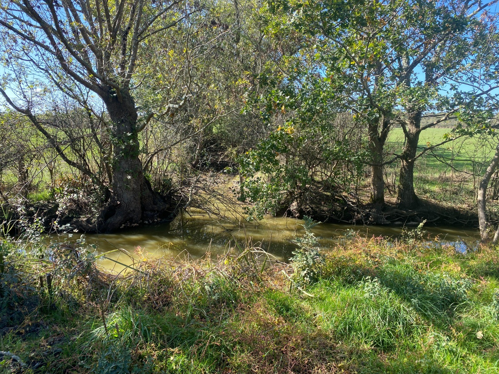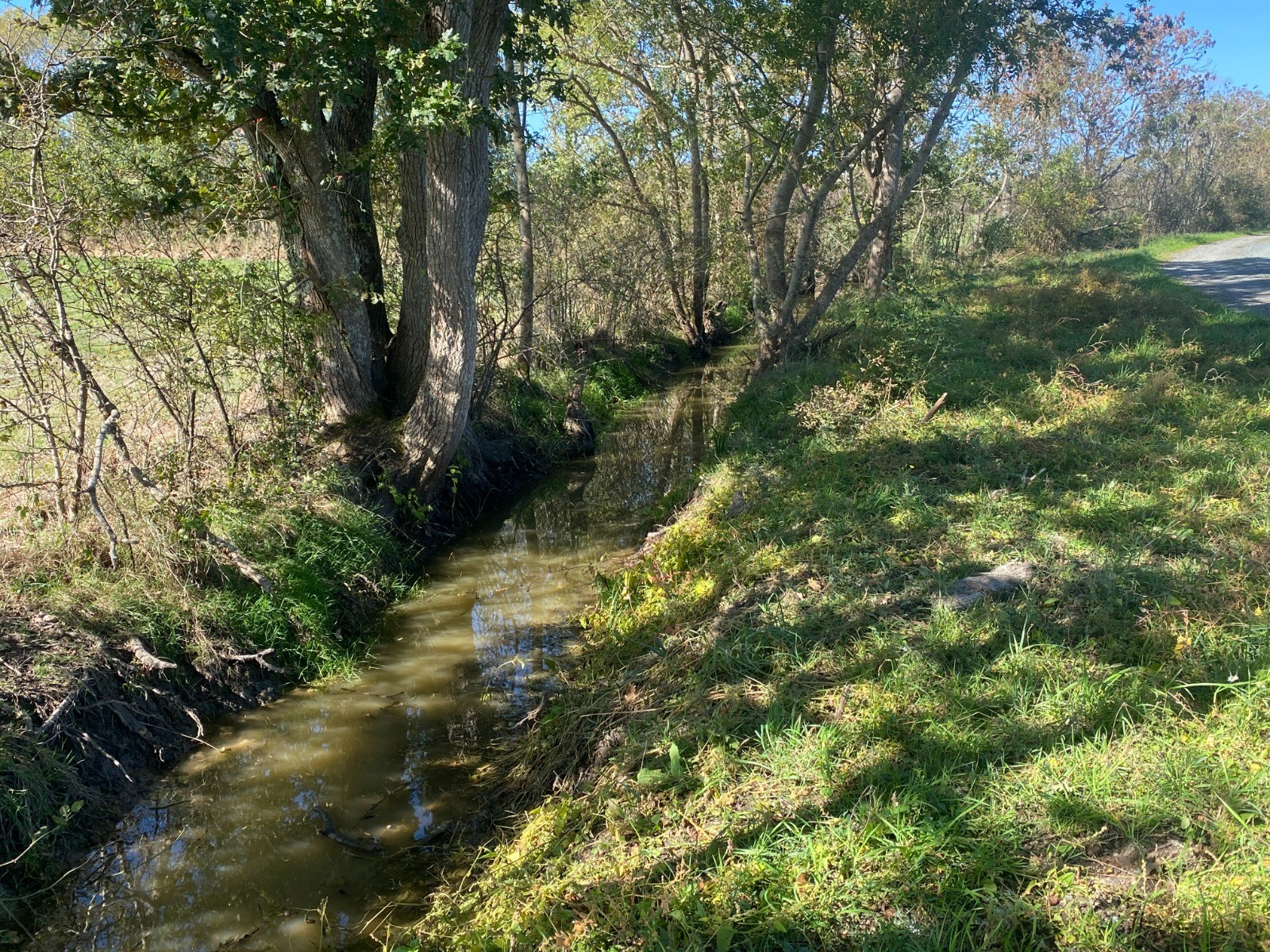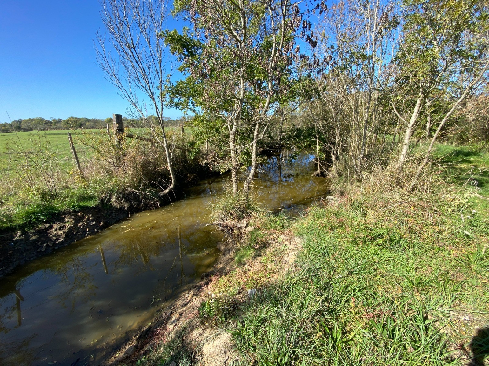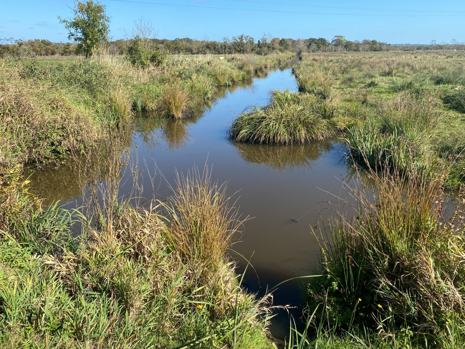 Le chemin de retour passe ensuite par le marais du Pré, un paysage plus ouvert où les prairies humides alternent avec de petits fossés bordés de saules.