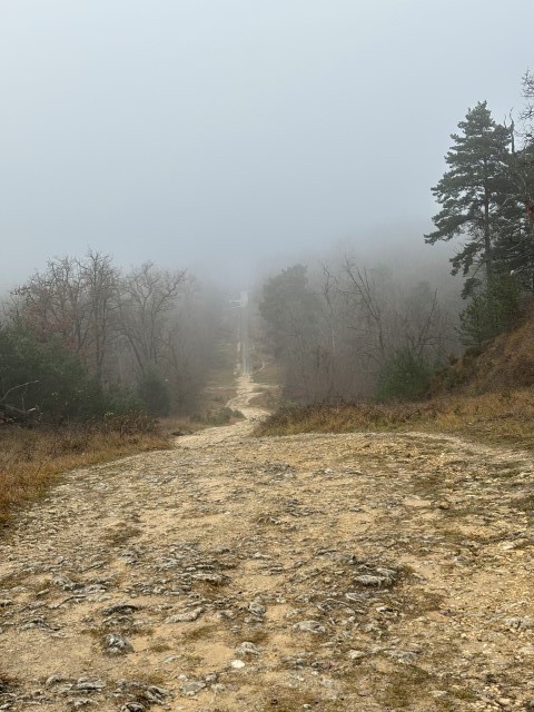 1 - Partir en direction du sommet de la colline dit le Petit Mont Chauvet, arrivé en haut admirer le panorama et ensuite prendre à droite, laisser sur la gauche une ancienne poudrière dont on aperçoit les grilles et continuer jusqu’au point de vue sur le Champ Minette, de cet endroit on regardait comment le tir du canon sur la colline était arrivé.