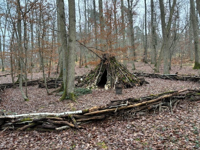 2 – Faire demi-tour et prendre à droite une petite sente (vers piquet bois) sortir sur un plus grand chemin avec sur la gauche une pièce en fonte des anciens canon de 240 postés sur le haut. Continuer et à la hauteur du dés en béton sur le gauche, prendre à droite une sente qui descend dans les bois pour rejoindre la route d’Occident.