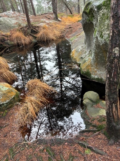 5 – Continuer le sentier bleu et continuer d’admirer les diverses roches : le Menhir de Bouligny (*), le passage de la Landelle (G) plus loin l’Arche de Bouligny (F) sur votre gauche le rocher de Regnard (D) et arriver en face les Mazarines (*).