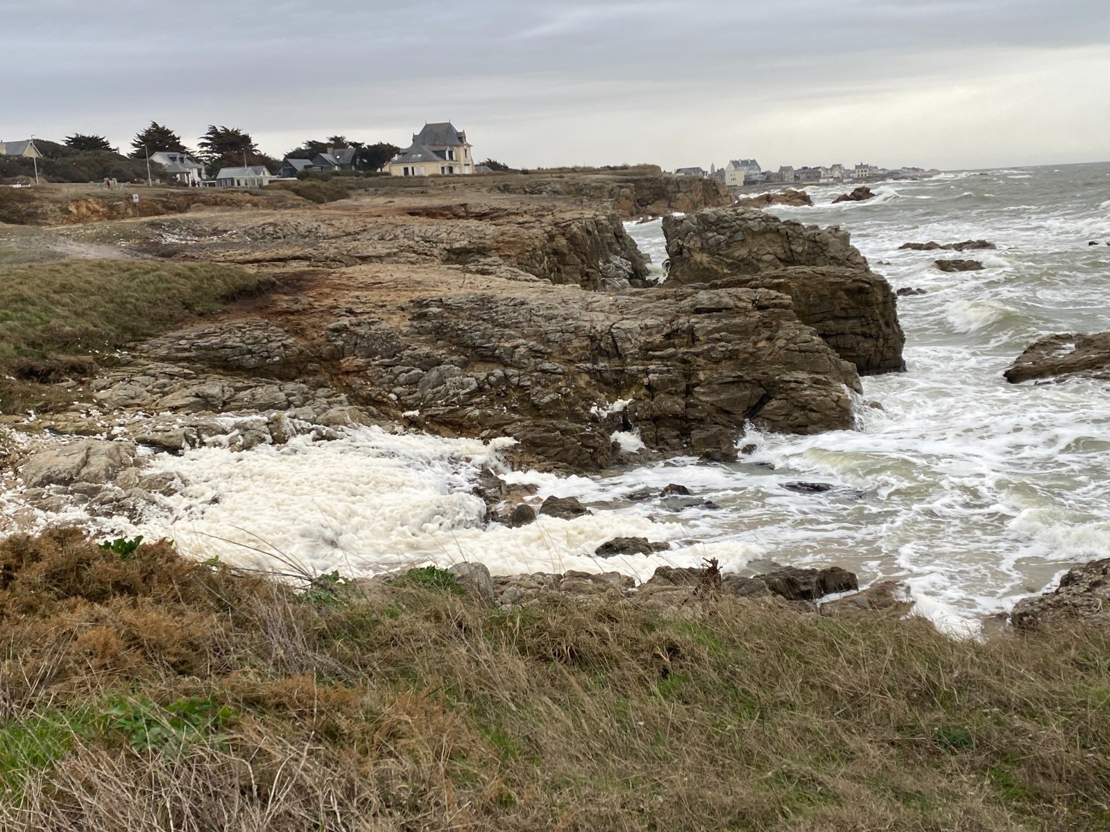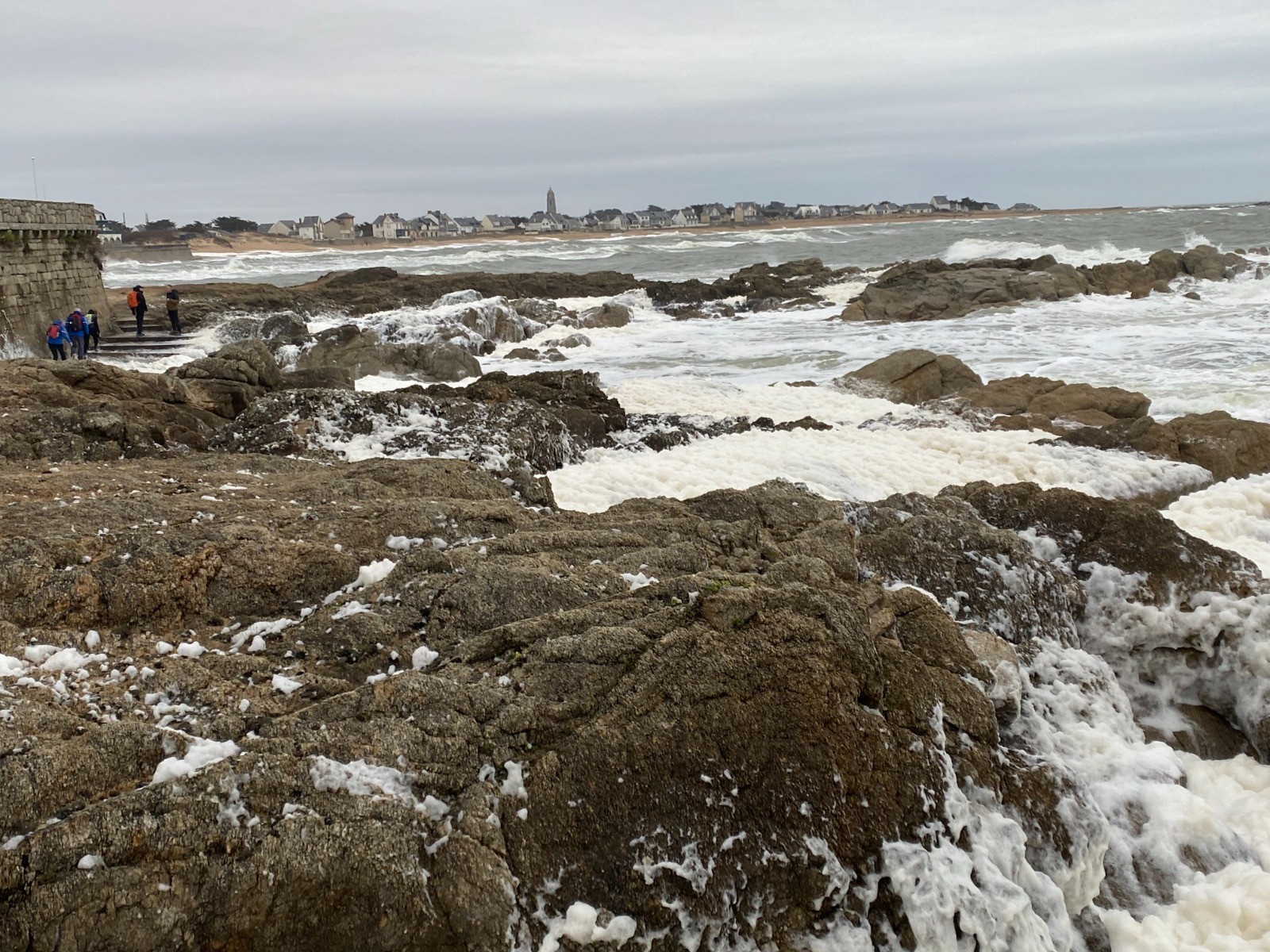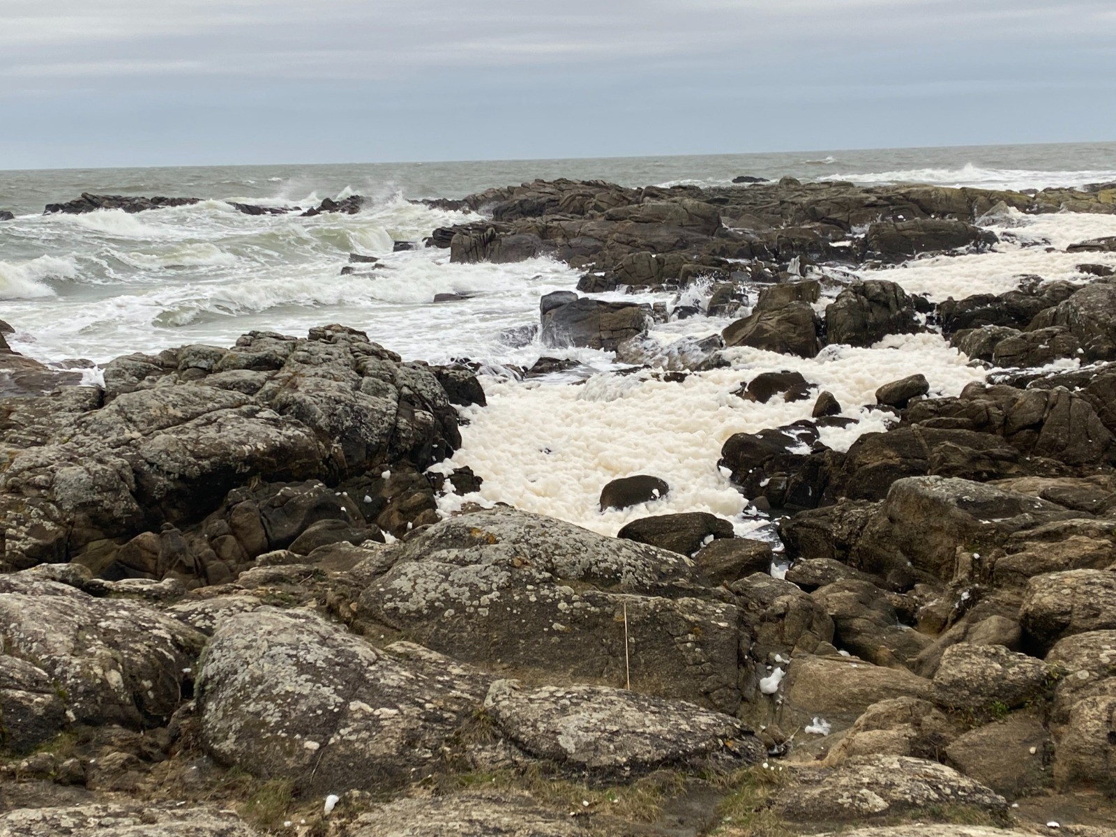 Aujourd'hui la mer est légèrement déchaînée et de gros paquets d'écume viennent caresser les rochers et nous donnent l'impression qu'il neige.