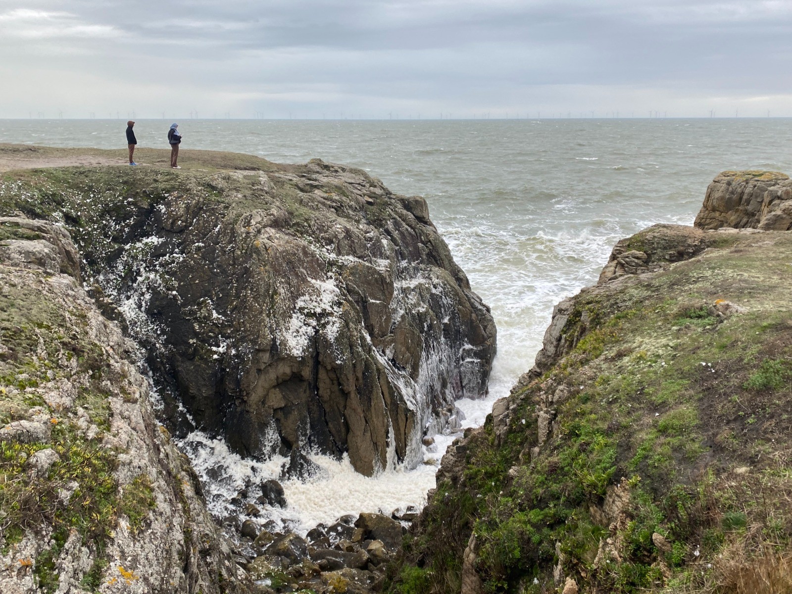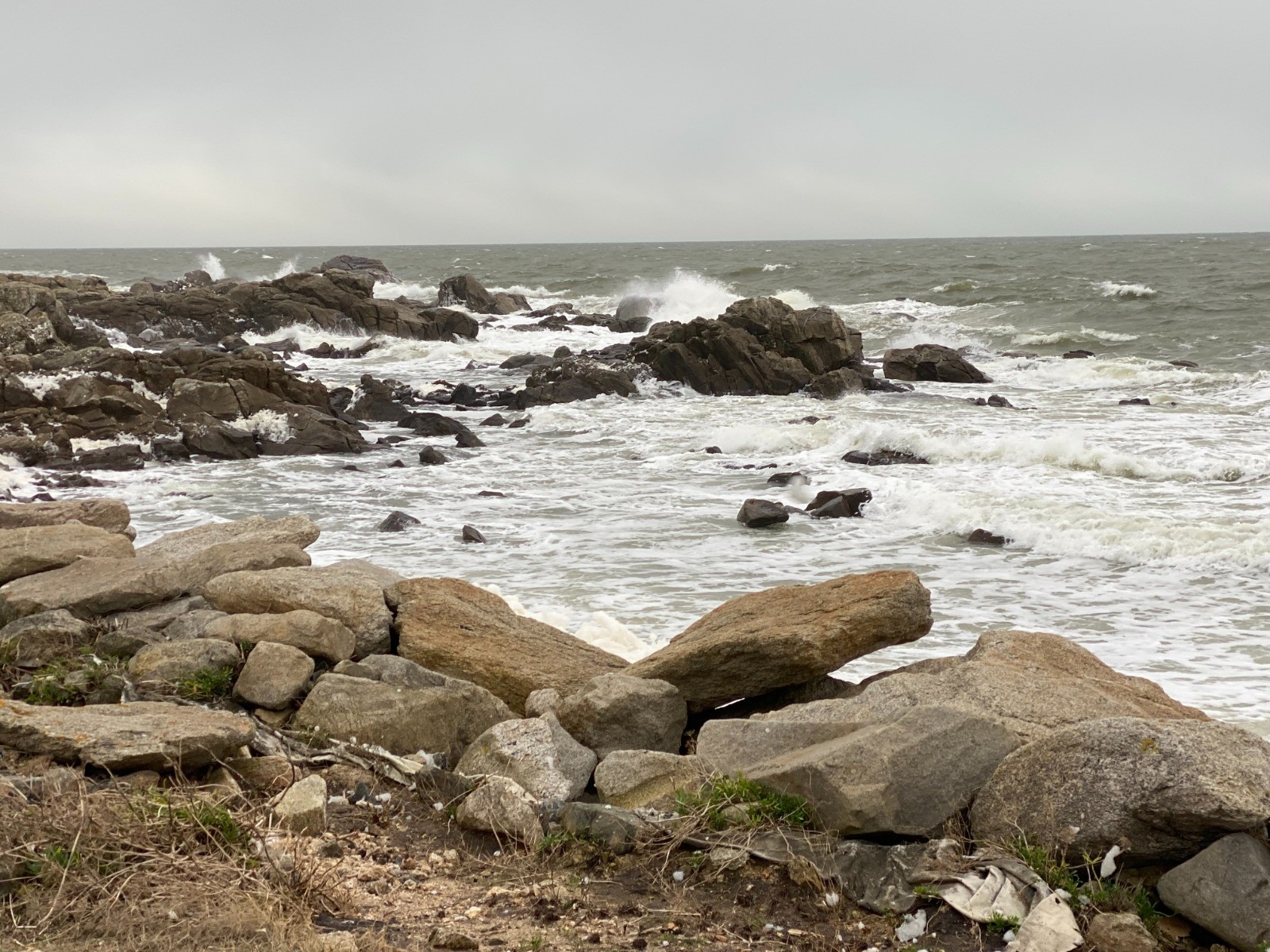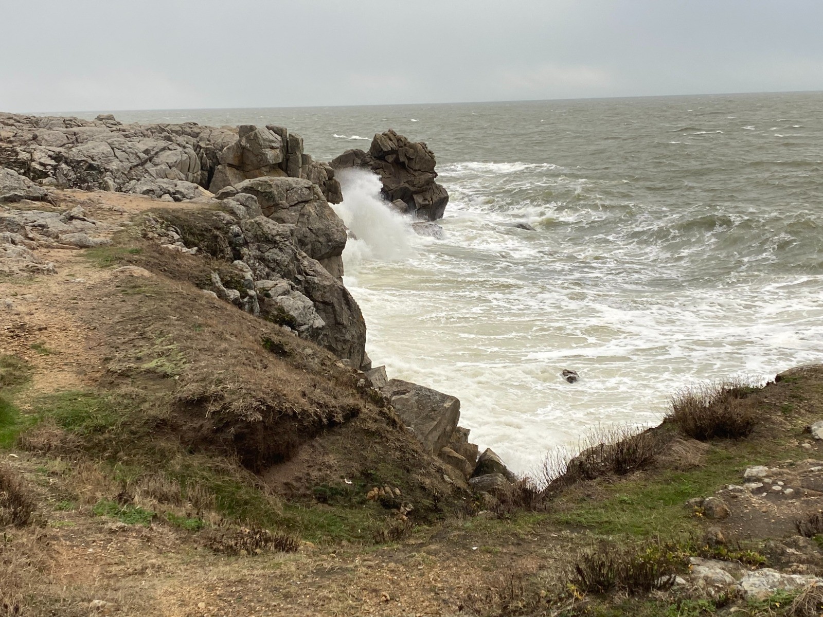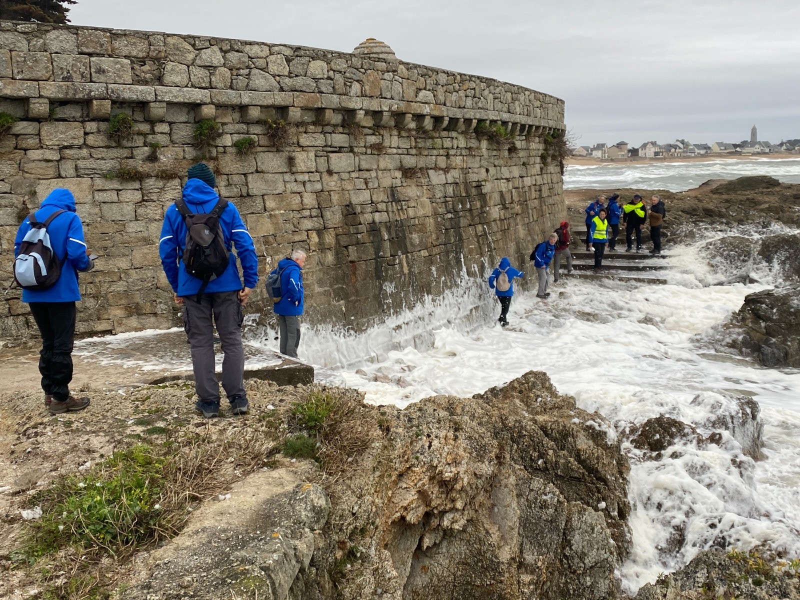 Aujourd'hui la mer est légèrement déchaînée et de gros paquets d'écume viennent caresser les rochers et nous donnent l'impression qu'il neige.