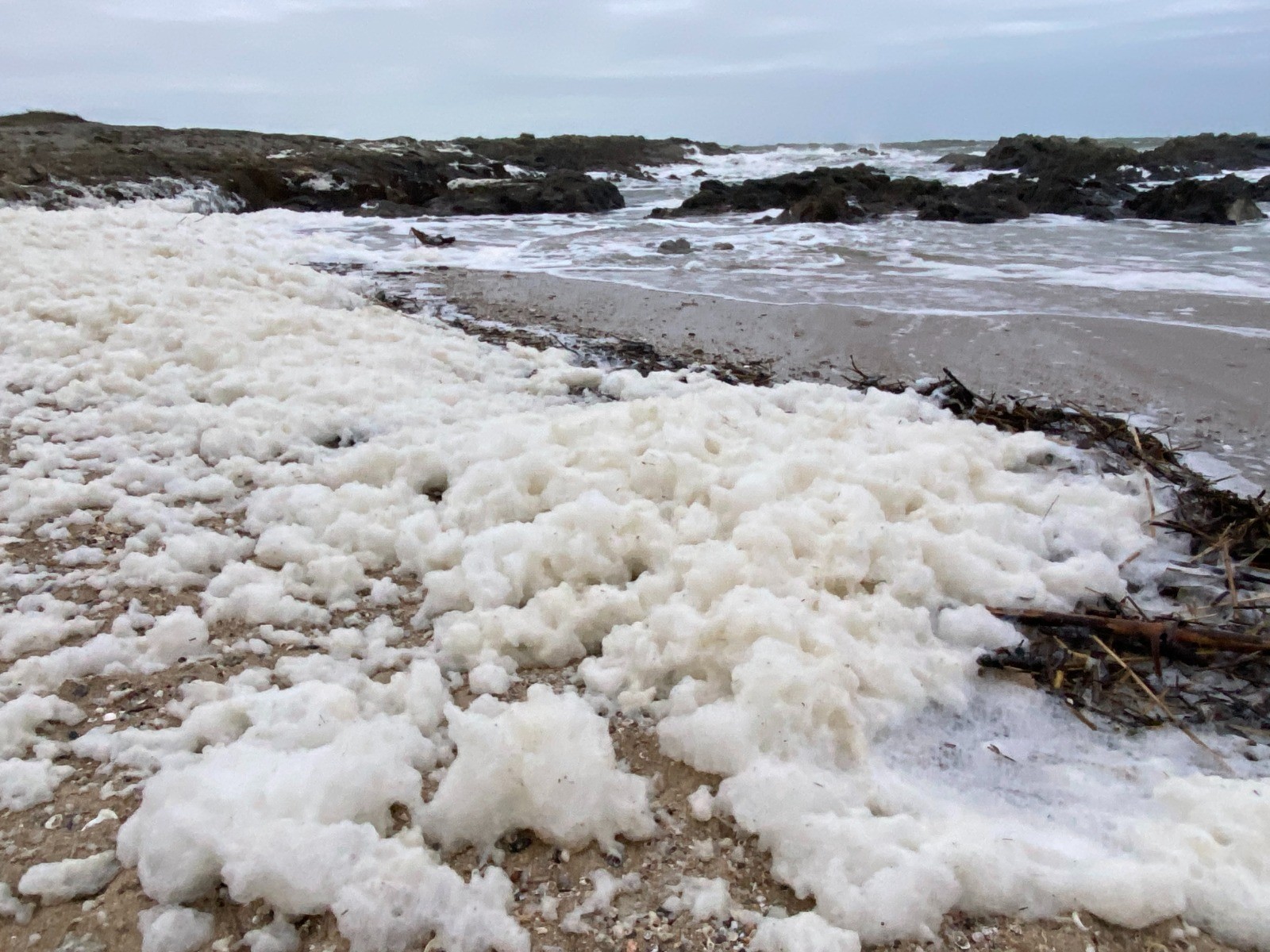 Kilomètre 13 le passage sur la plage s'avère délicat avec la marée montante et cette fameuse écume ( photo no 21 )