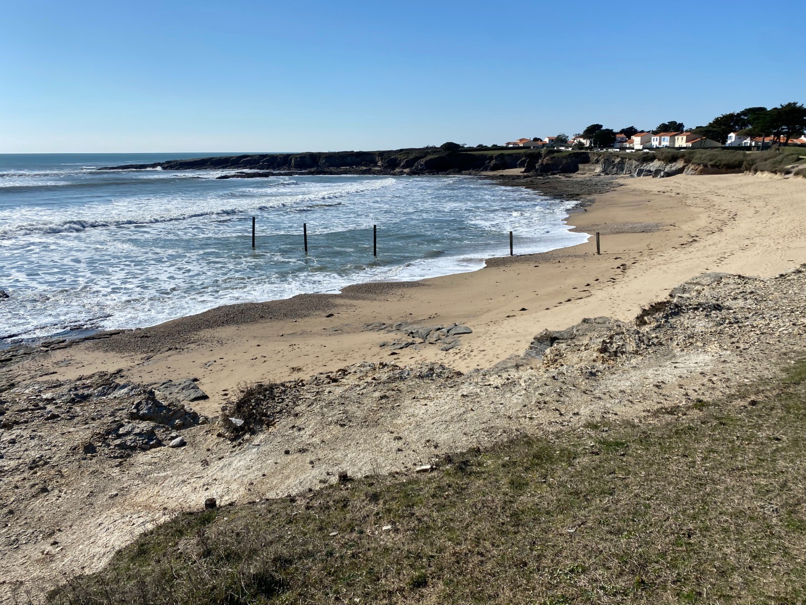Mois après mois la mer fait son travail de sape et la plage est devenue très exigüe.