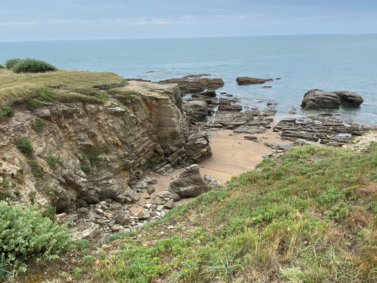 Je me dirige vers la pointe extrême très rocheuse. Une roche très friable d'où des risques d'éboulements.