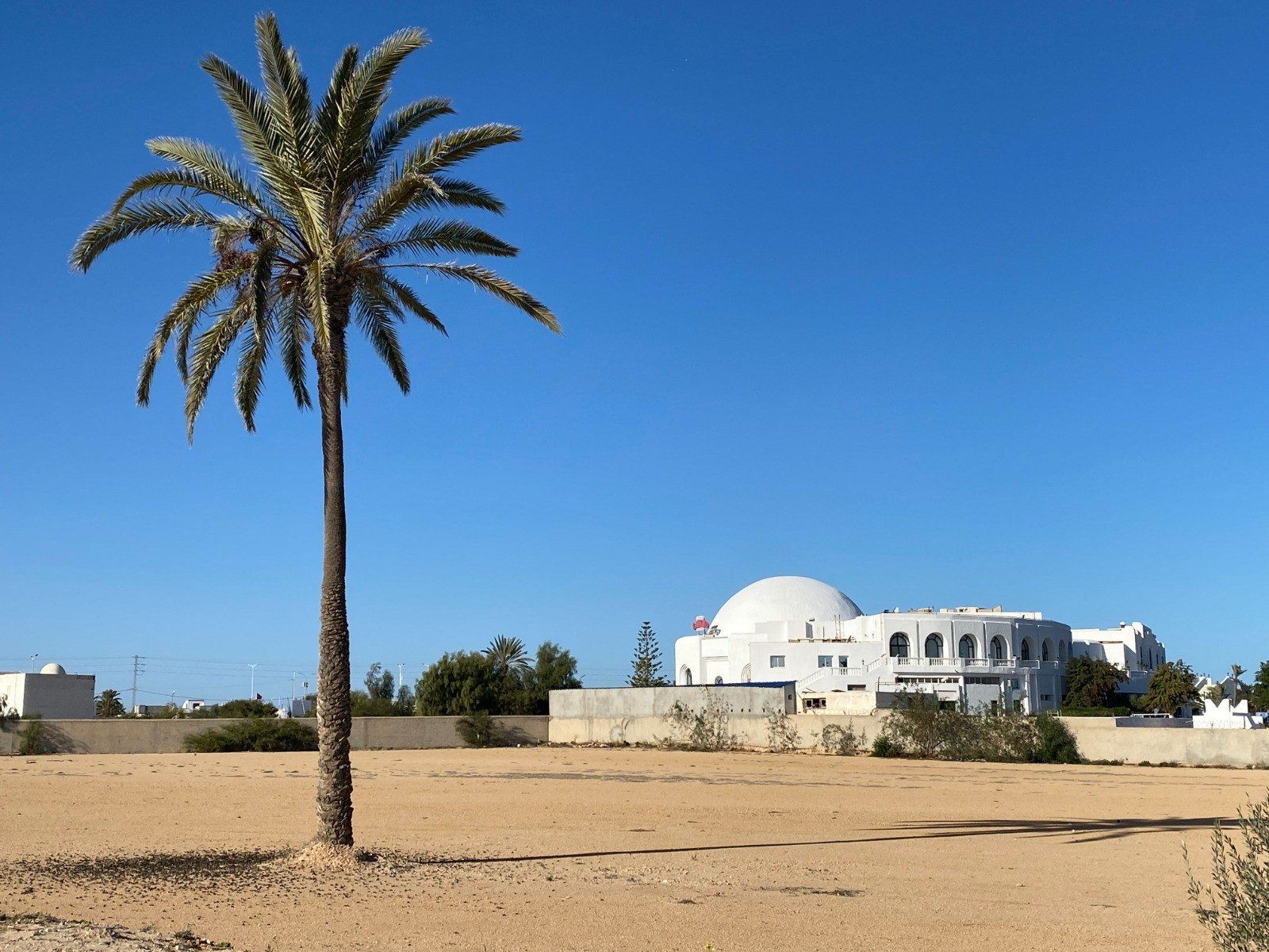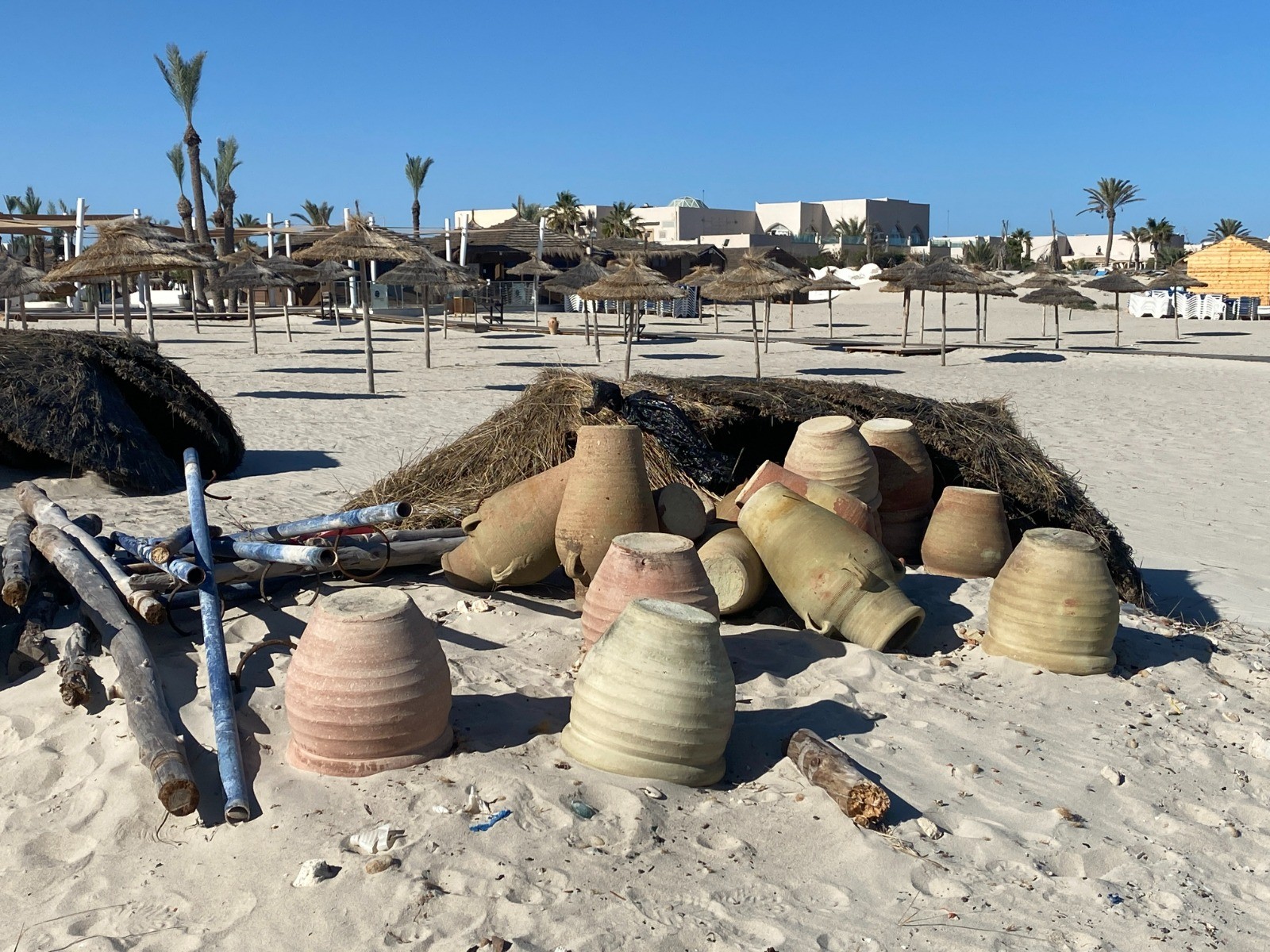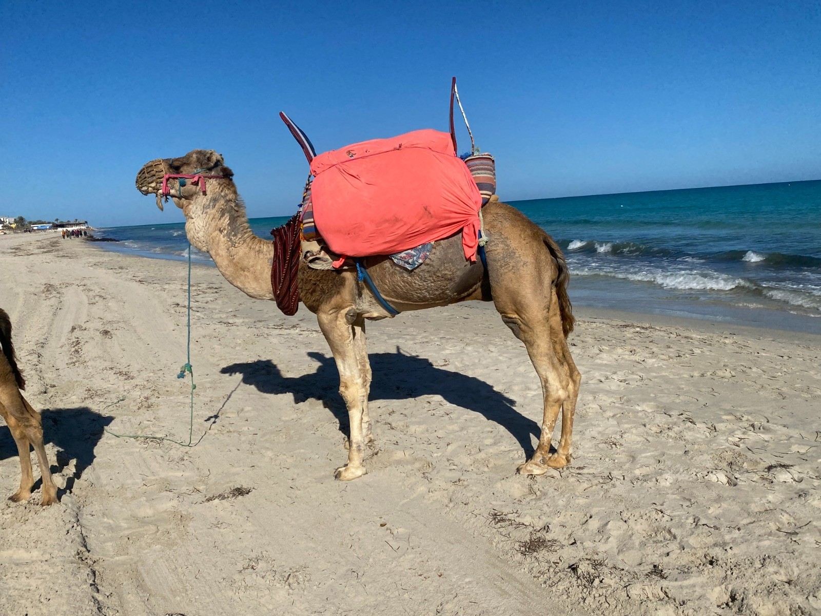 La partie la plus intéressante est de loin la plage de sable blanc, où l’on peut croiser des promeneurs les pieds dans l’eau, des cavaliers au pas tranquille, parfois même un chameau surgissant comme une apparition.