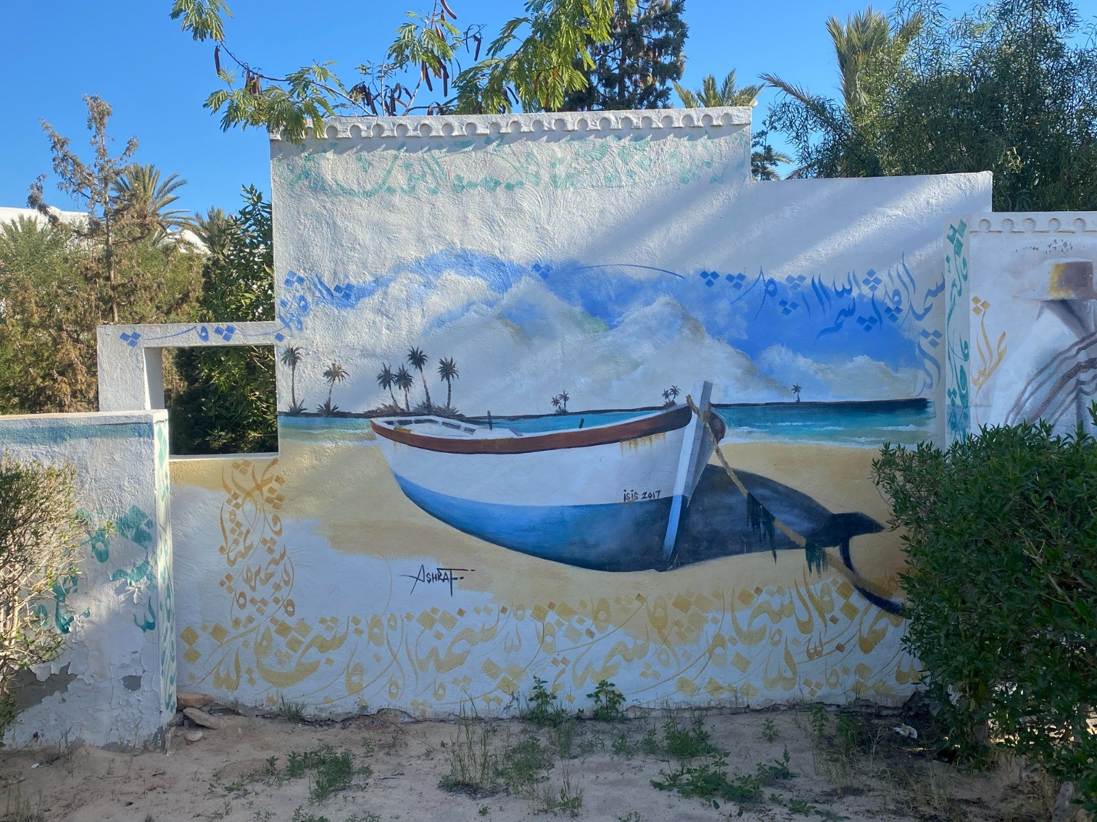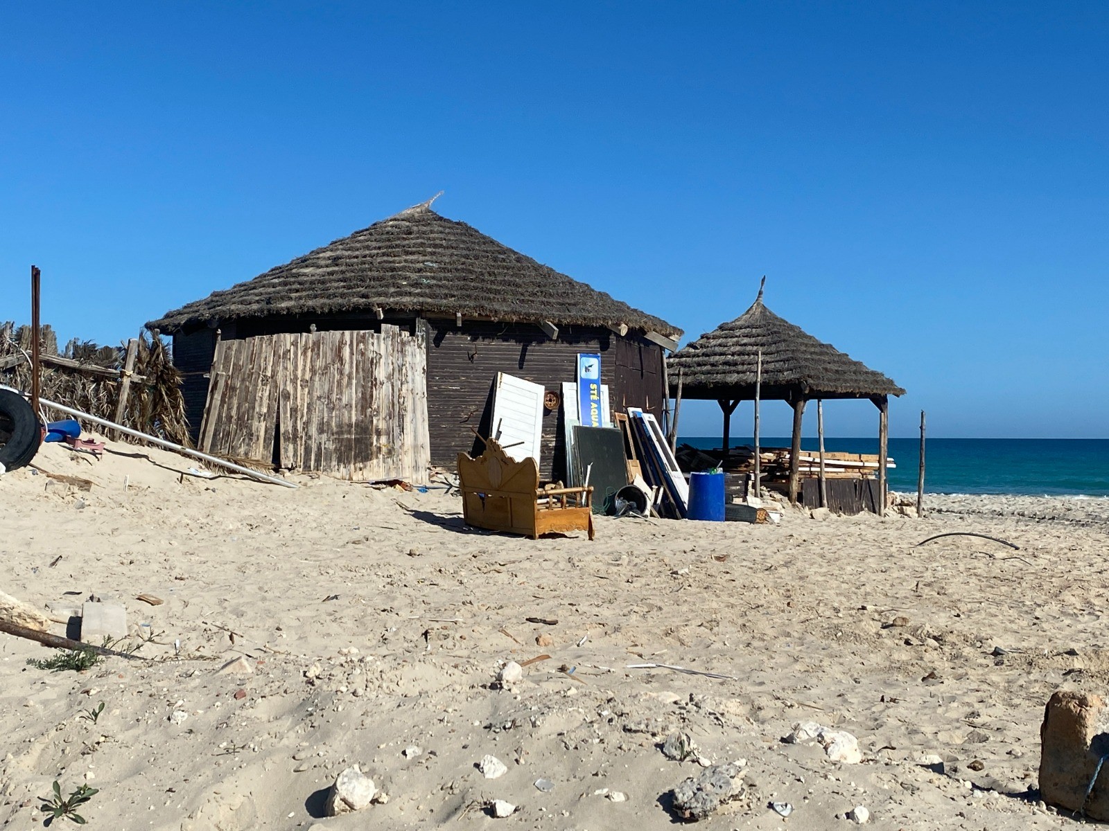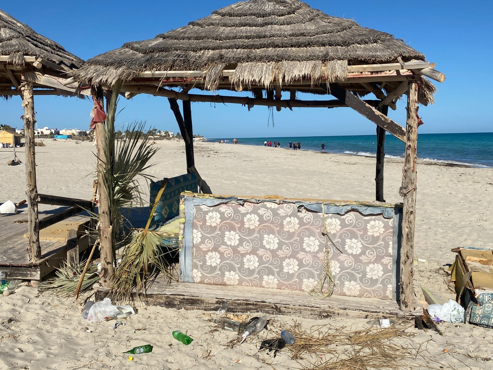 La partie la plus intéressante est de loin la plage de sable blanc, où l’on peut croiser des promeneurs les pieds dans l’eau, des cavaliers au pas tranquille, parfois même un chameau surgissant comme une apparition.
