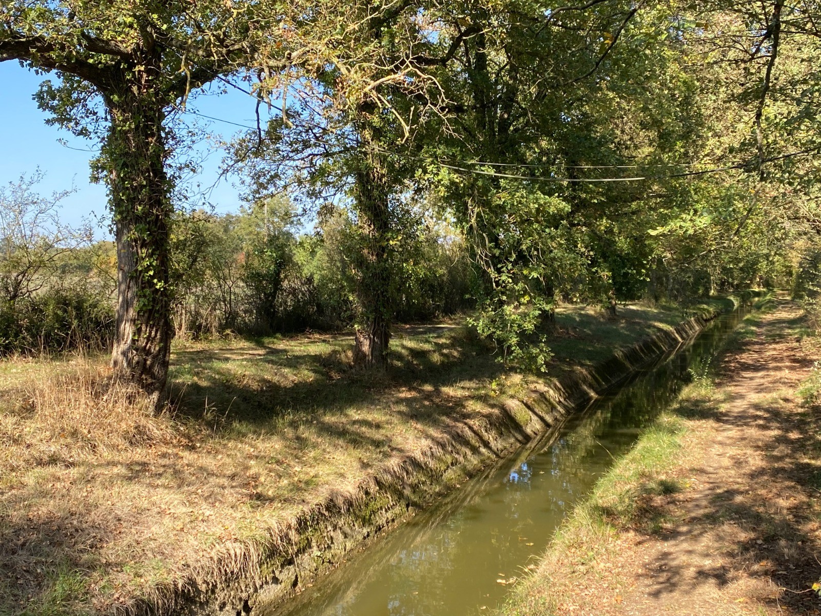 Ensuite grâce à un chemin de halage très étroit nous allons longer sur plus de deux kilomètres la rigole qui alimente le canal.