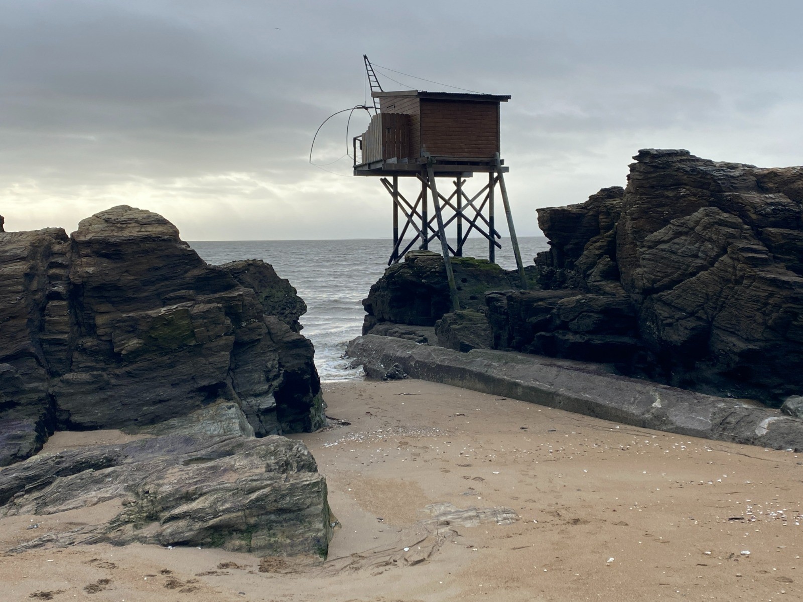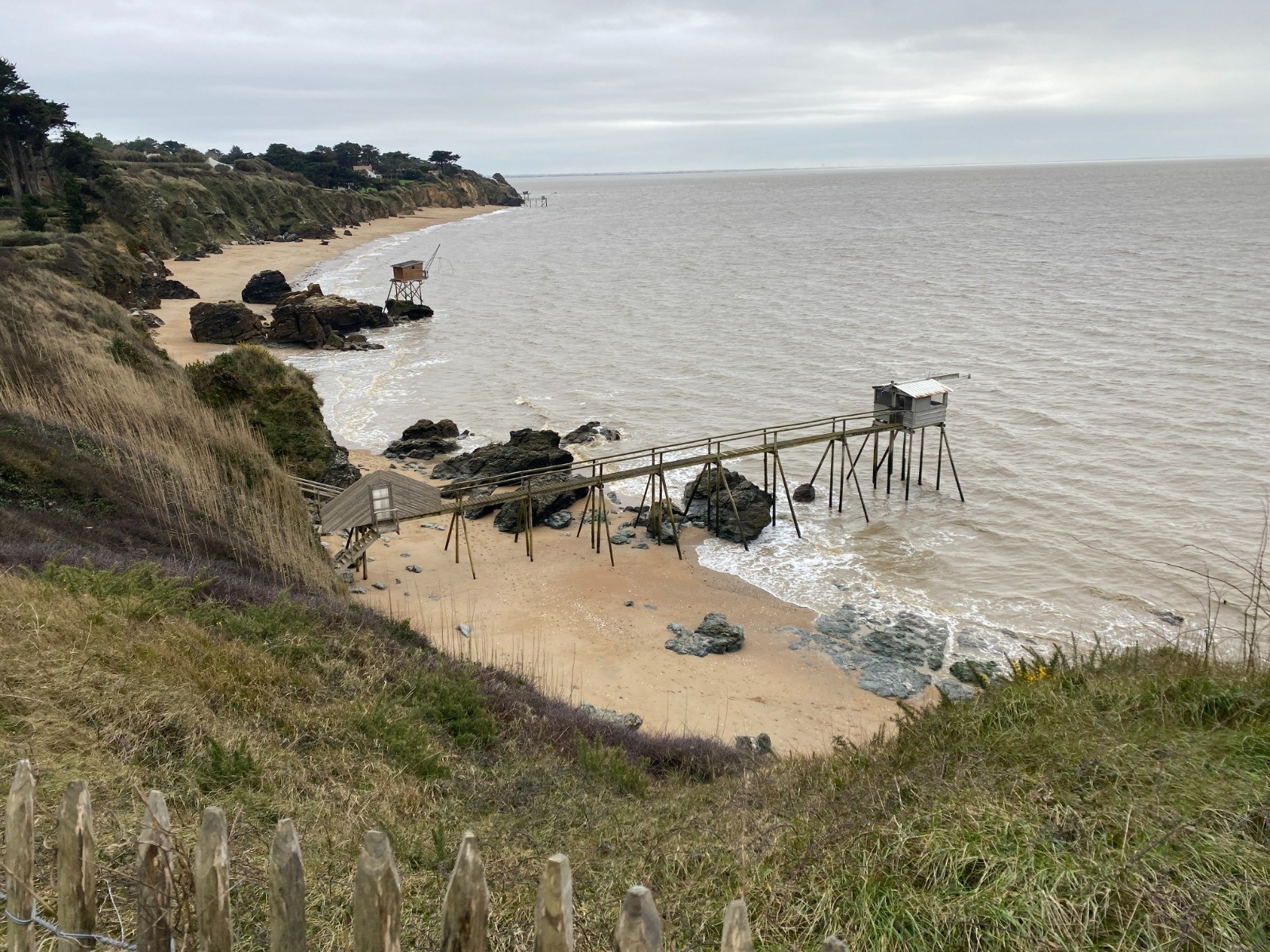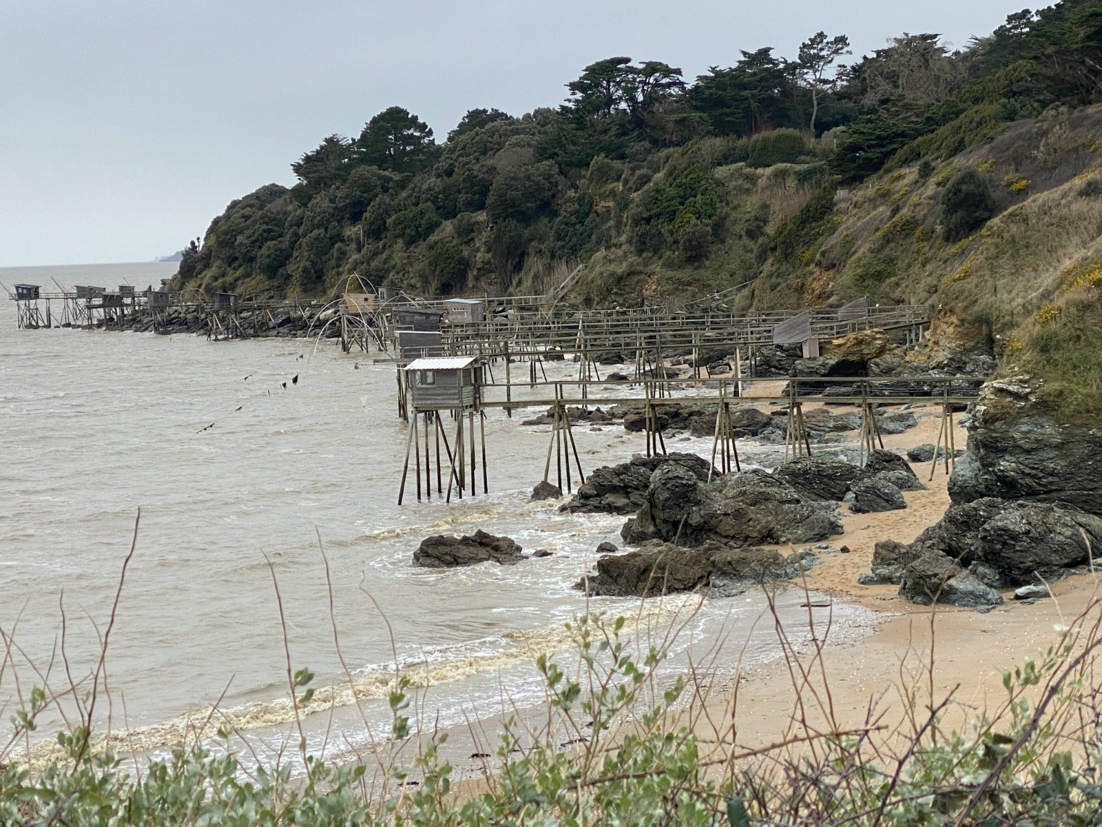 Direction la plage de la Boutinardière qui est une grande crique de sable où se dressent d'étranges et gigantesques rochers au milieu d'innombrables pêcheries.