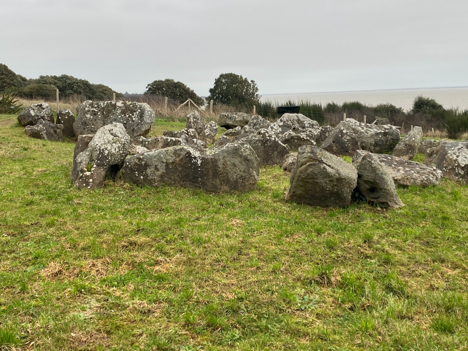 Ce site mégalithique, fortement endommagé, appartient aux dolmens de type transept référencés de part et d'autre de l'estuaire de la Loire.