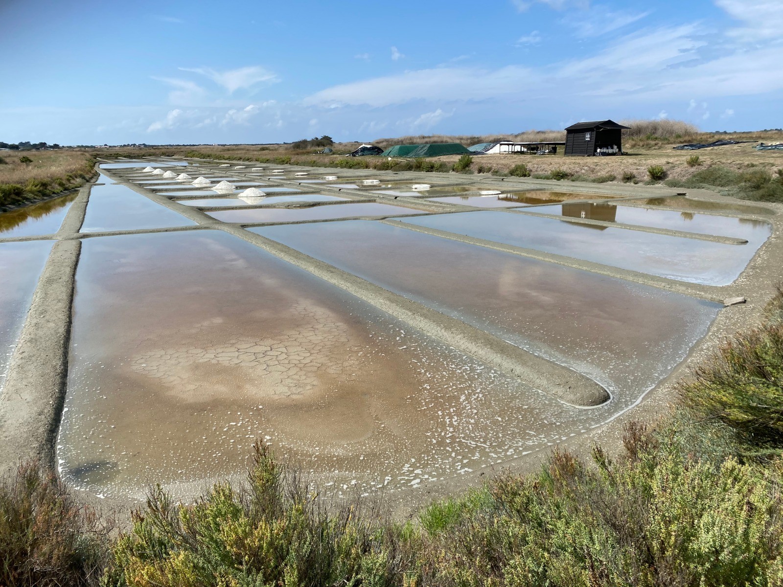 Plus nous avançons dans les marais plus nous voyons des salines.