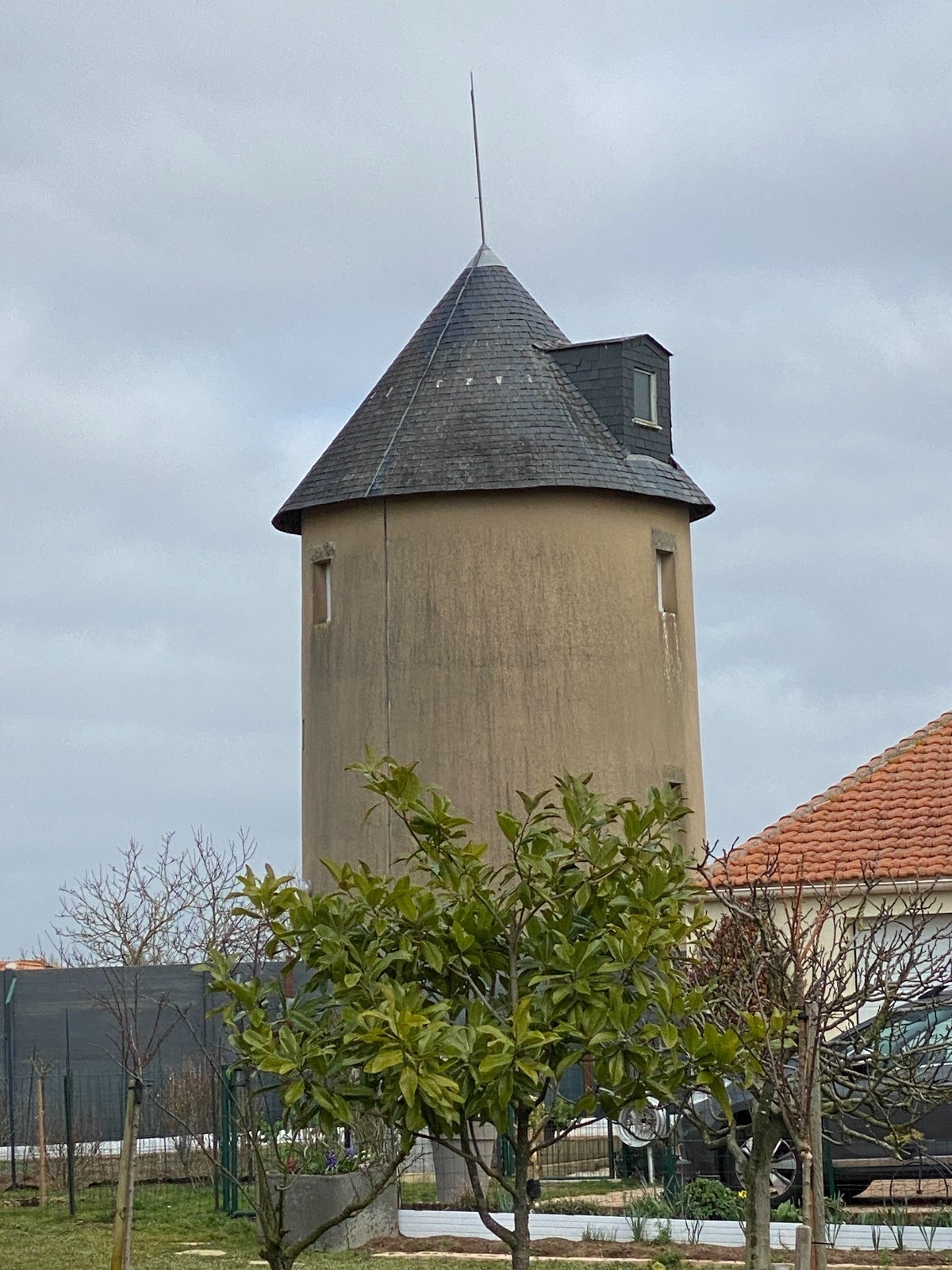 A quelques mètres se trouve l'ancienne chapelle ( bâtiment blanc ) qui appartenait au château.