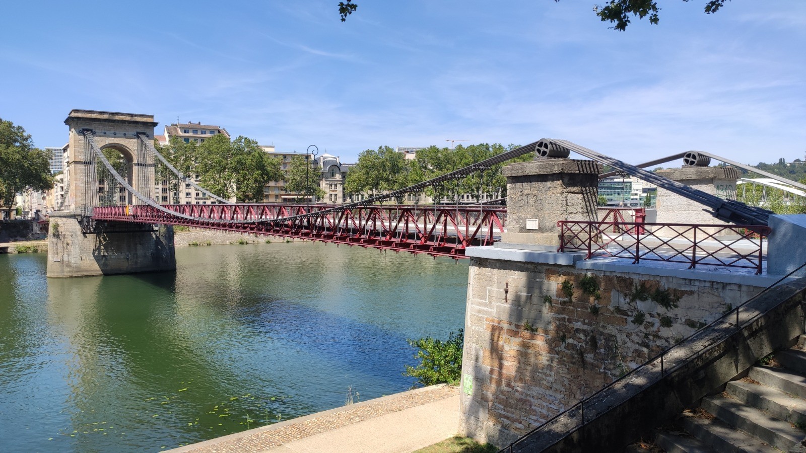 La trace arrive à L'île Barbe, et emprunte ensuite les Berges de Saône rive Gauche (interdites aux vélos) Ceux qui voudront éviter la remarque du promeneur aigri qui ne veut pas partager resteront sur la piste cyclable en haut en bordure de Saône.