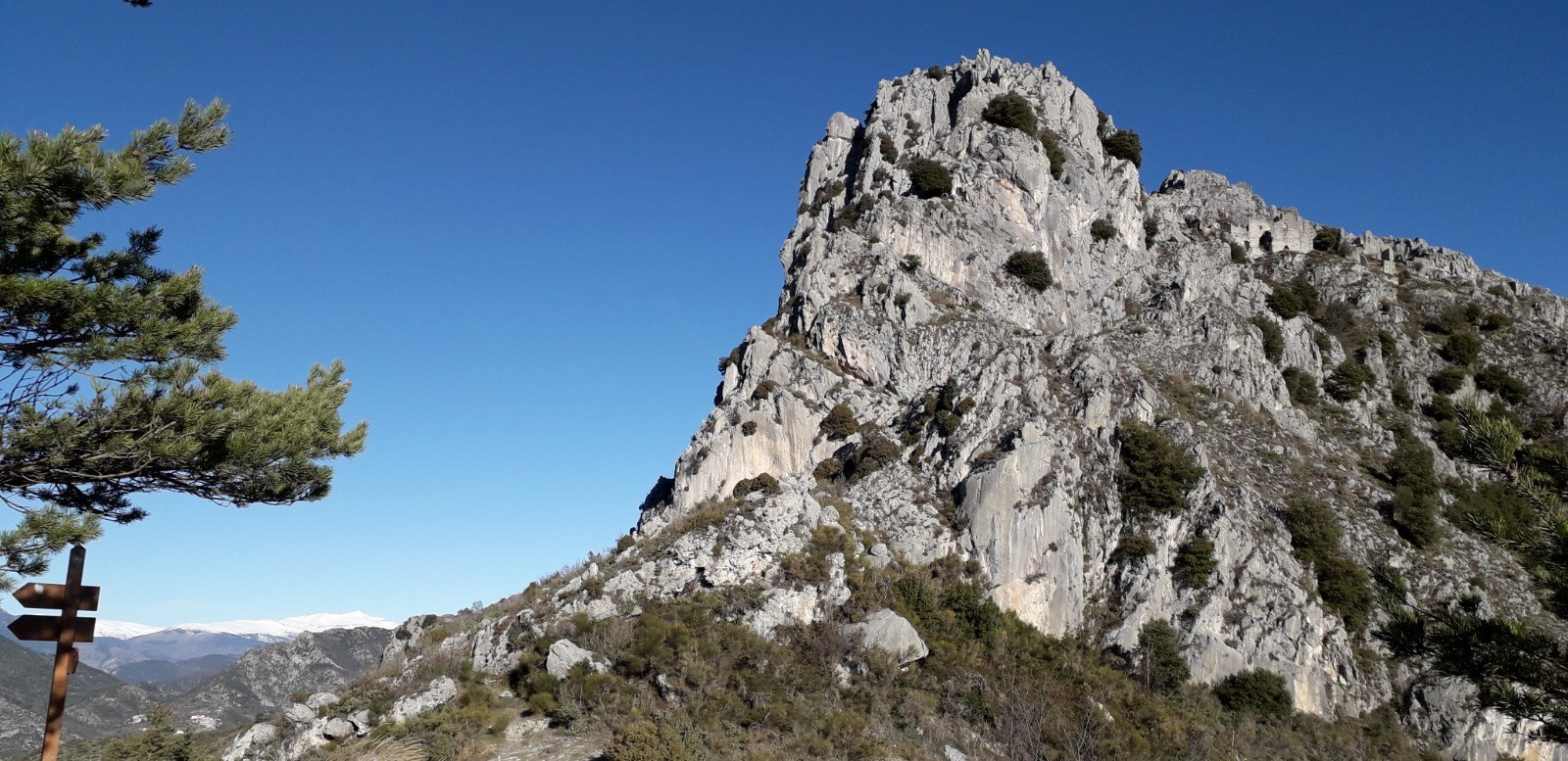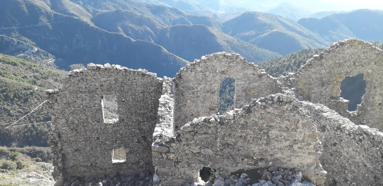 Parcours réalisé le 08/02/21. Sympathique balade axée sur la découverte du hameau abandonné de Rocca Sparvièra délaissé par ses occupants en 1720 avec en toile de fond la légende de la malédiction du site proférée par la reine Jeanne (vous renseigner sur Web). Visite nostalgique qui permet de fouler le silence de ces ruines chargées d'Histoire qui bruissent encore des âmes erratiques des anciens.Voir la chapelle St Michel toujours entretenue et entamer un beau cheminement (accentué) par les crêtes depuis le col St Michel jusqu'aux sommets successifs de la Croix de Gaudissart (1104 m) et de la Pointe de la Sérèna (1191 m). J'ai rallongé volontairement l'itinéraire jusqu'à la balise 207 avant d'obliquer vers le village de Coaraze pour la phase retour mais je vous conseille de le faire dès la borne 205 qui la précède car la descente paraît moins difficile. Vos genoux vous remercieront !