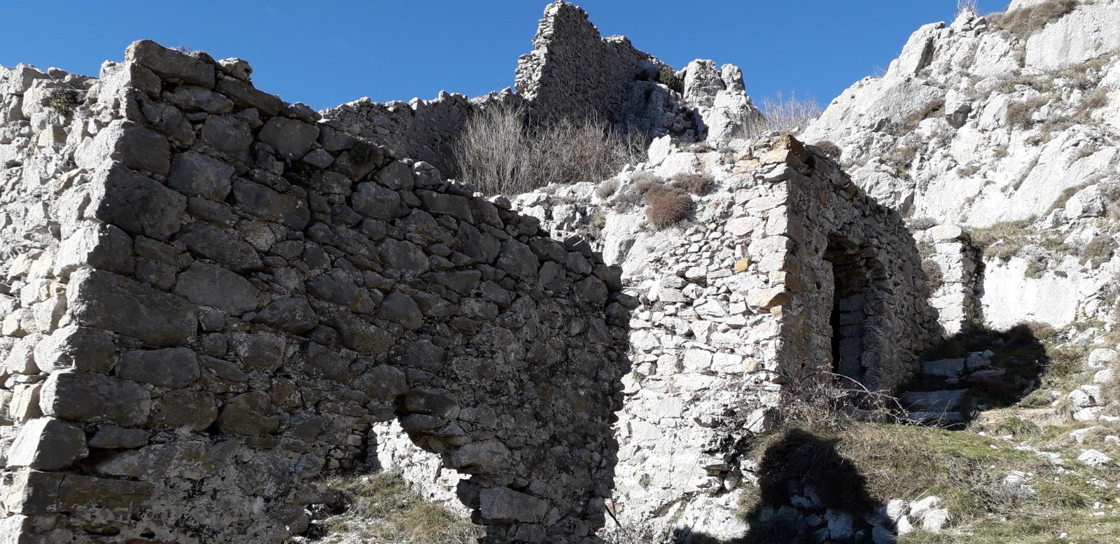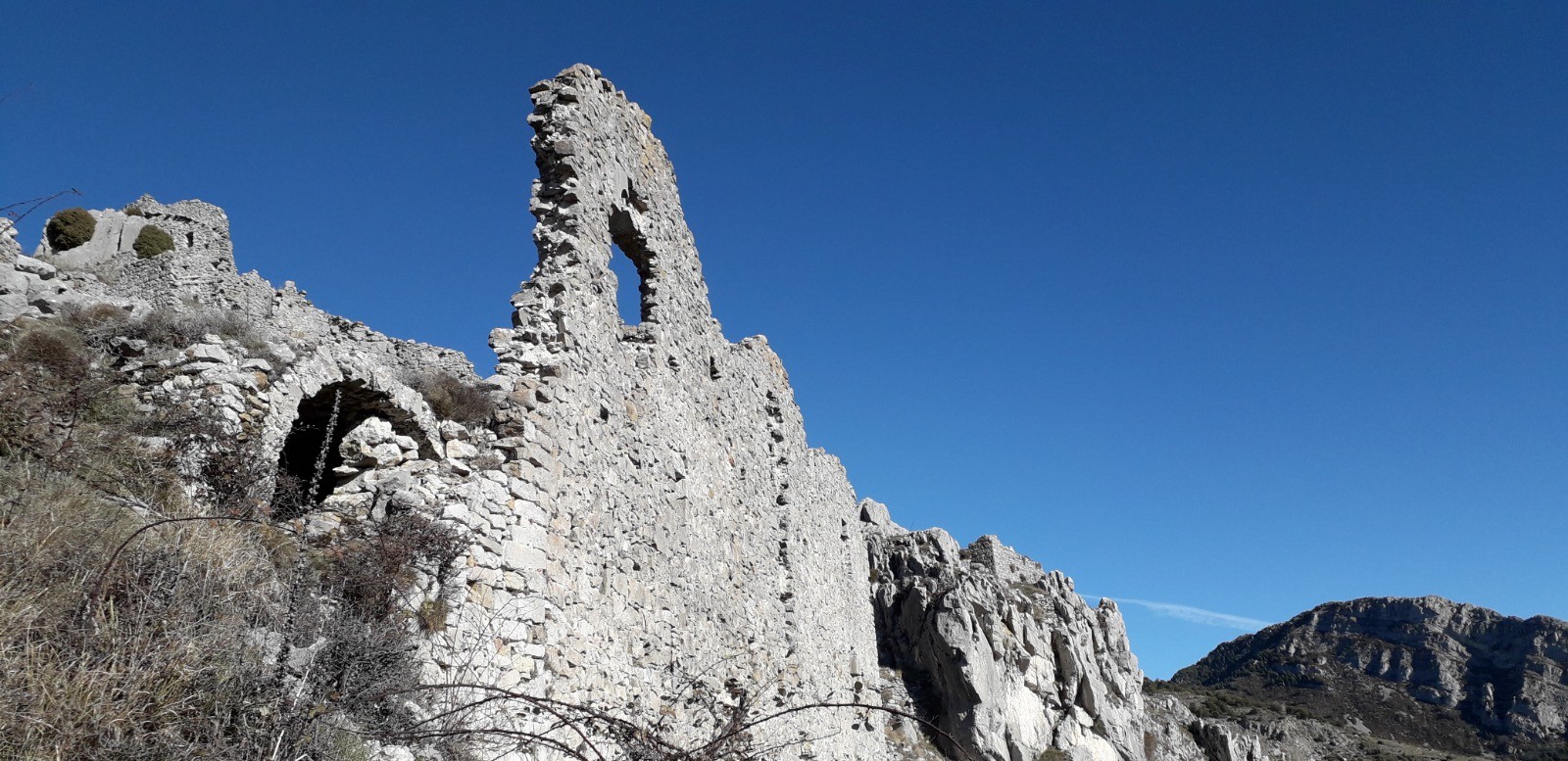 CONCLUSION : Rando à thème sans prétention. Les ruines du "Rocher des Eperviers" sont bien abritées du vent et se prêtent à un bivouac (attention aux chutes de pierres). On distingue au loin le littoral et le tracé en boucle est de mise pour éviter le simple aller-retour préconisé par le guide Randoxygène.