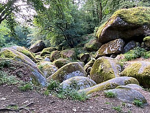 4 kmBalade des mares à Piat et Dagneau. Petit parking sur la route ronde (D142). Cette balade suit des parcours non balisés, quelques fois en RBD, par le GR et le sentier bleu n°5 du Cuvier-Chatillon. On rencontre un peu tous les terrains : sable, terra, blocs, cailloux, et des fougères (attention a »