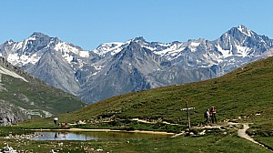 34010 mTraversée des Alpes : 3ème partie de la Grande Traversée de la France à pied de Lauterbourg à Hendaye par les 5 massifs du pays. Dans le nord des Alpes par le GR5 : les vues sur le Mont Blanc, le Beaufortain, la Vanoise… chaque jour apporte sa dose d’émerveillement. Au mont Thabor, j’ai »