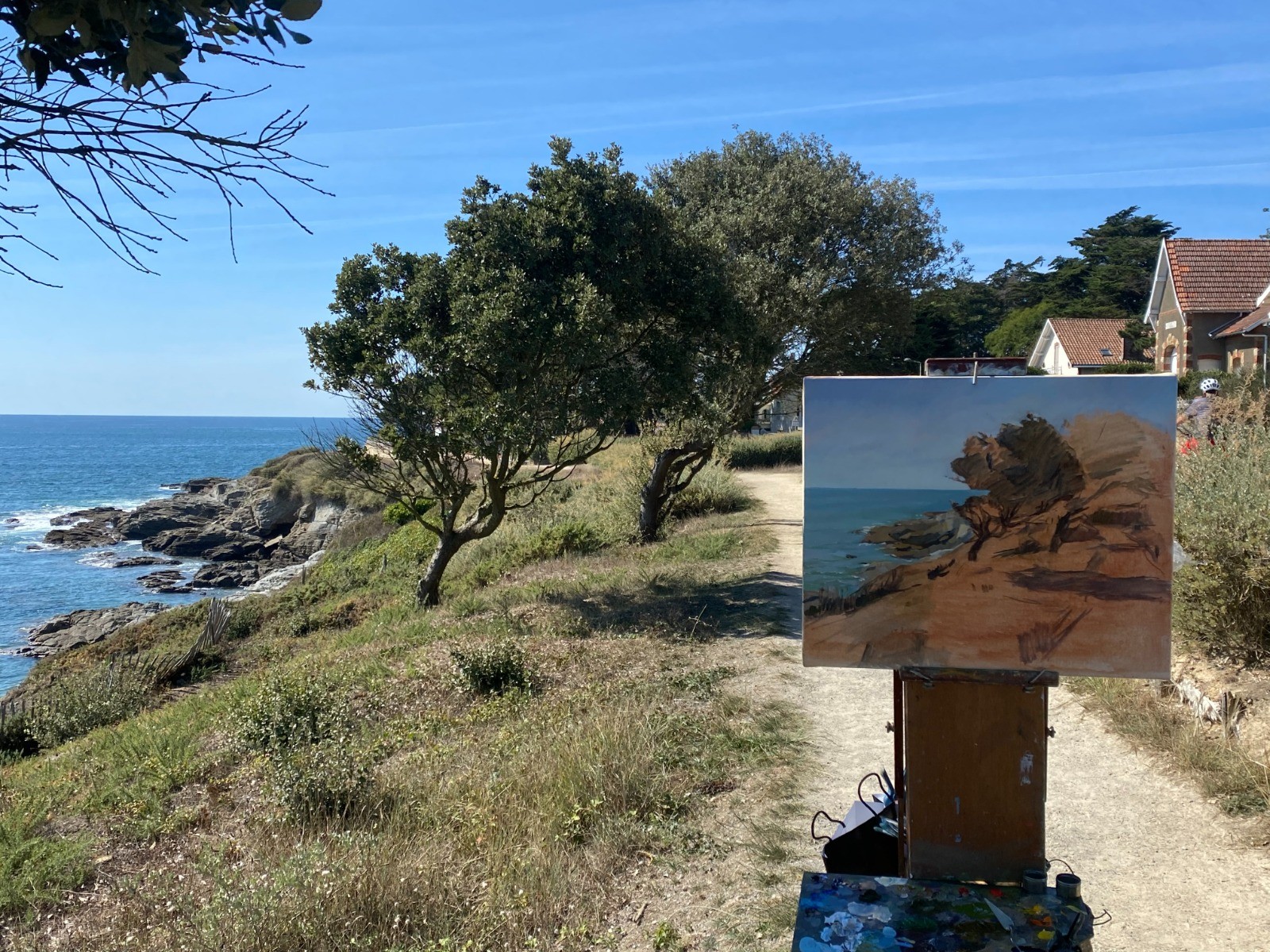 Des pupitres illustrent Préfailles avec la reproduction de peintures.