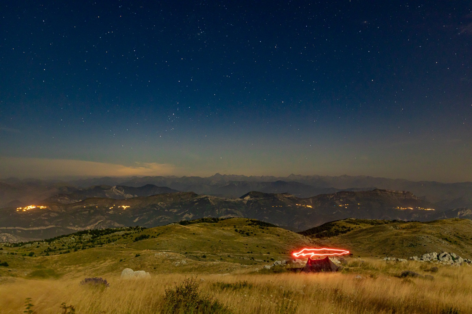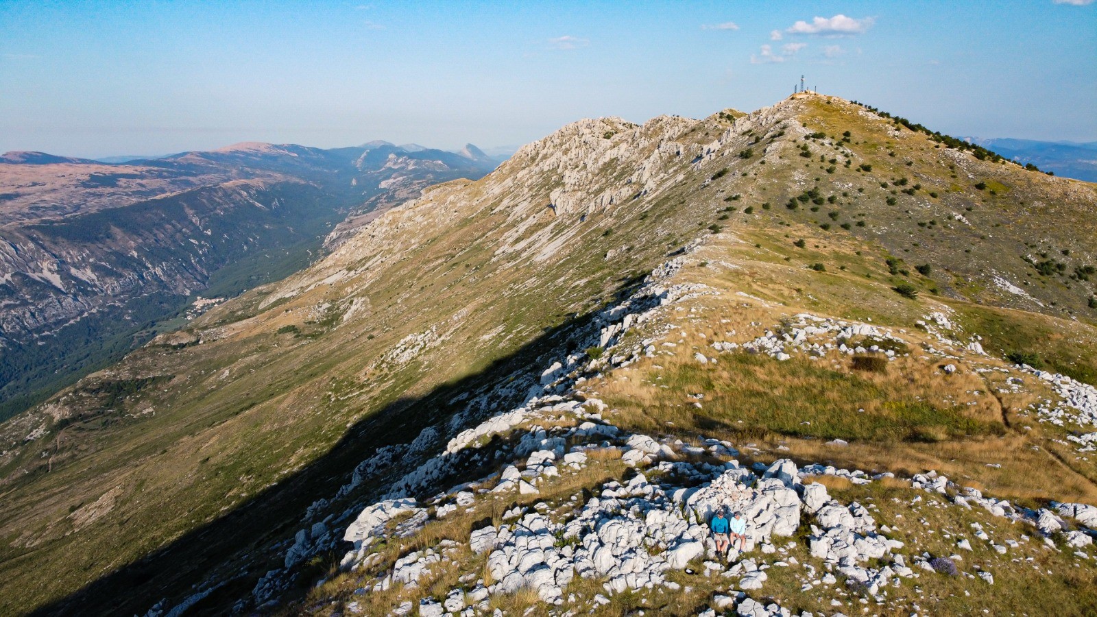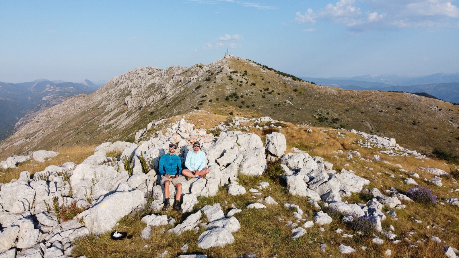 Ascension un peu rude, mais rien d'insurmontable. D'en haut, une vue magnifique à 360°, avec les alpes au nord et Nice au sud. Attention à bien prendre de l'eau, nous n'en avons trouvé nulle part tout au long de ce bivouac.