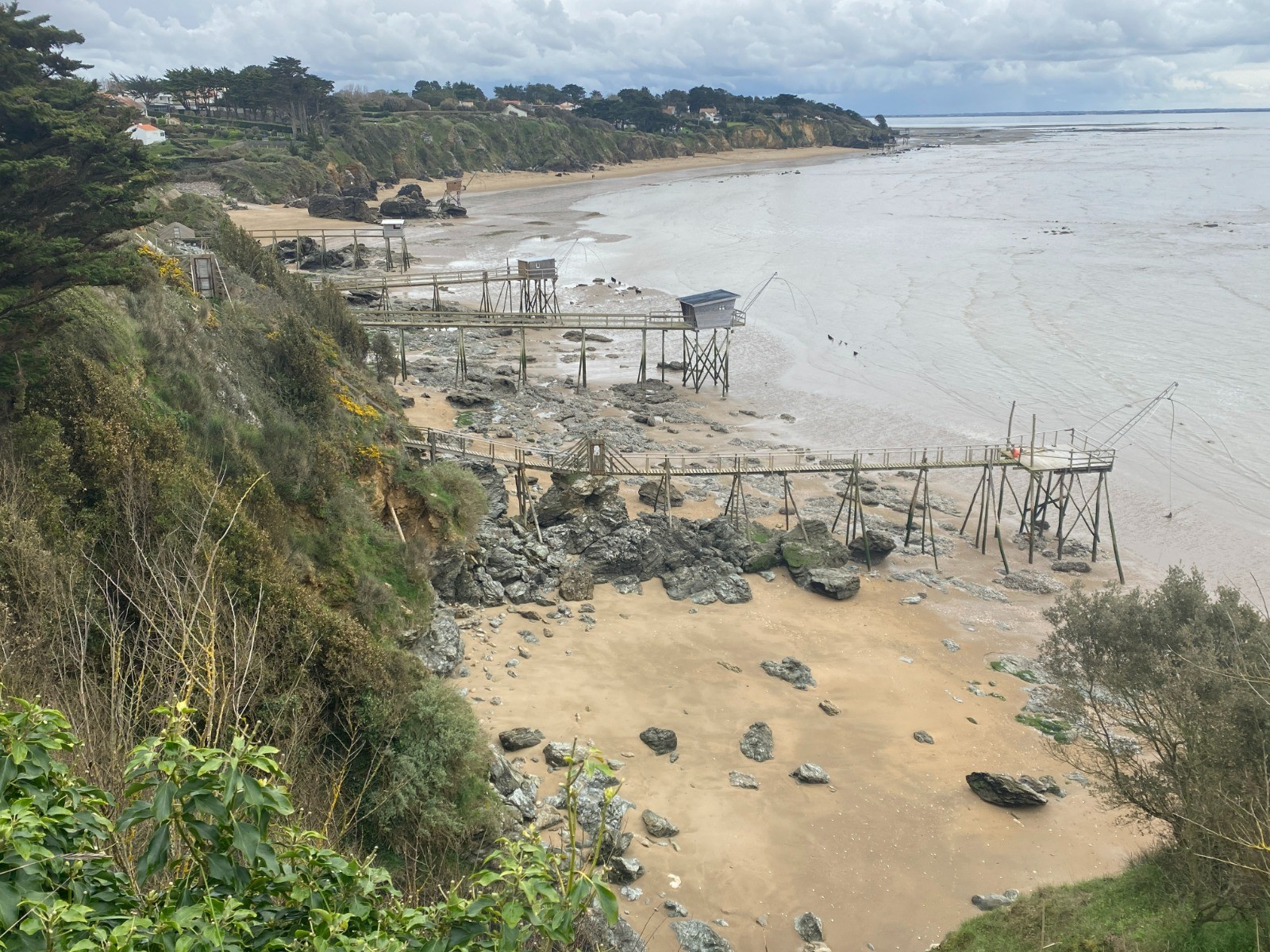 En regardant bien, à marée basse, on peut aussi remarquer des pêcheries plus anciennes : des monticules de rochers et de pierres qui forment des entonnoirs géants, et se terminent en pointe.
