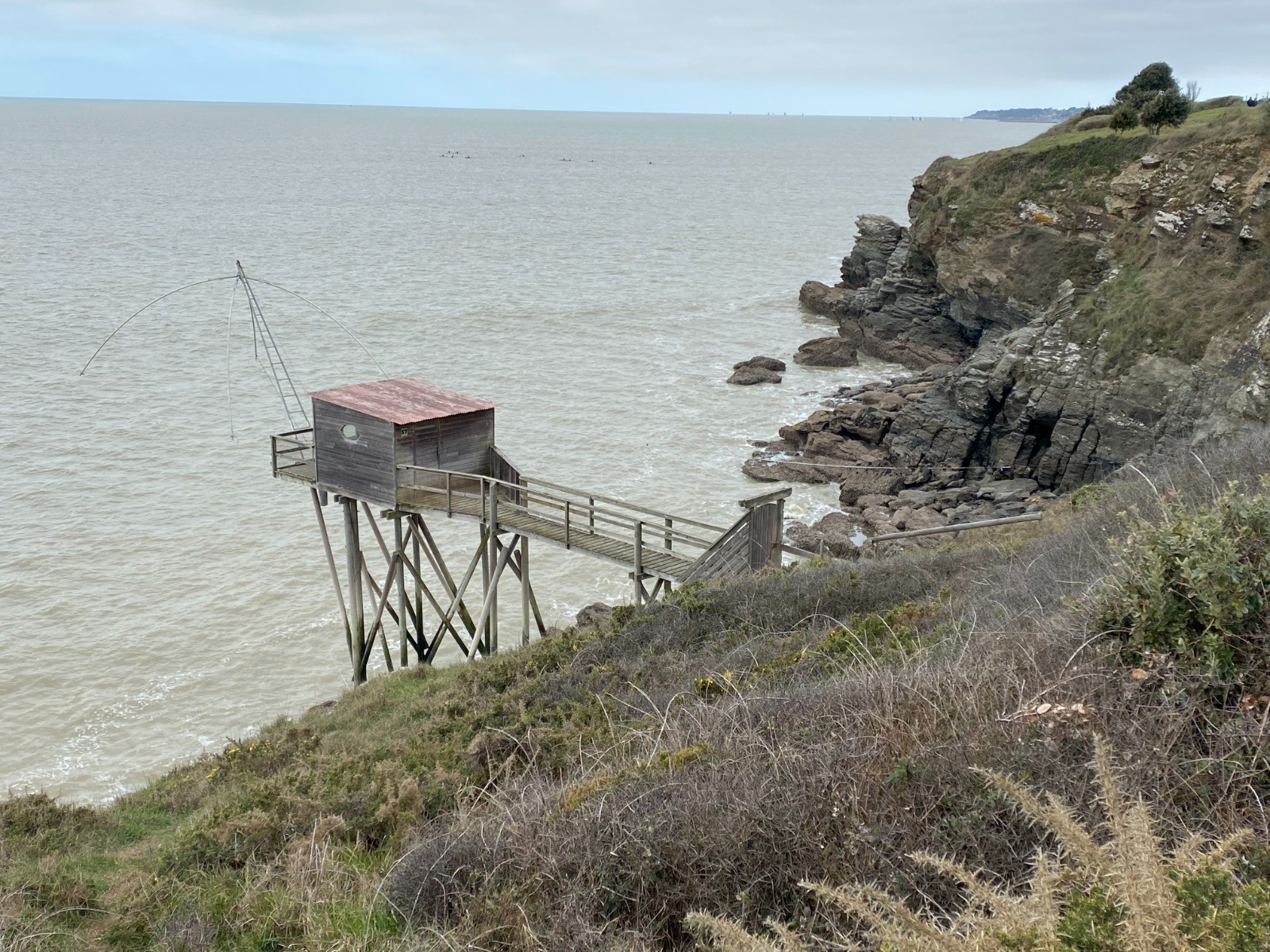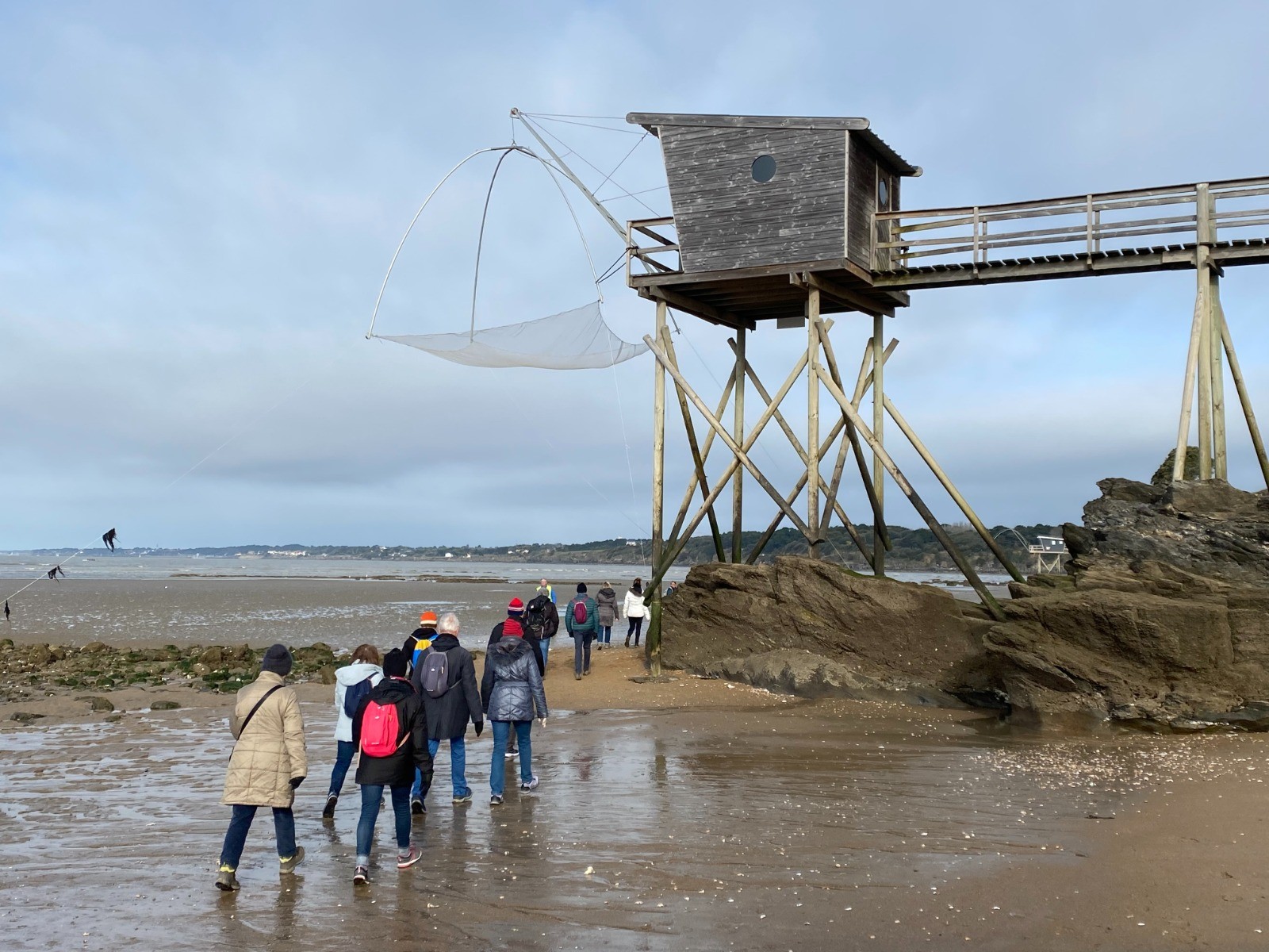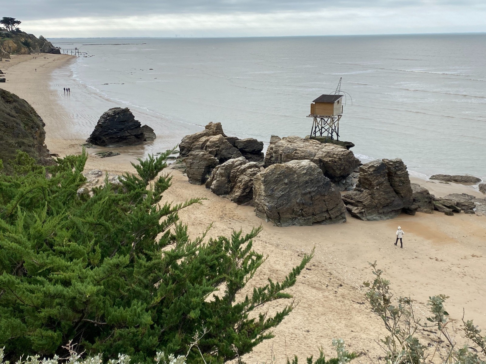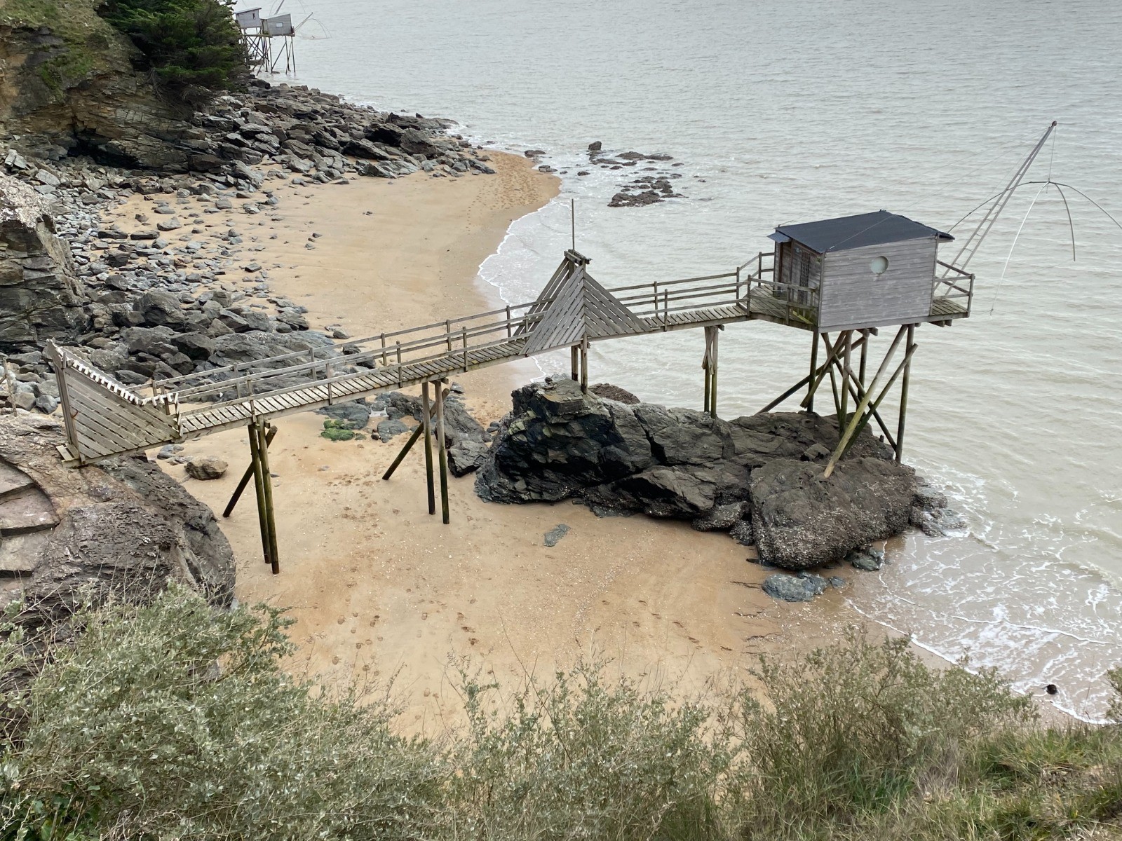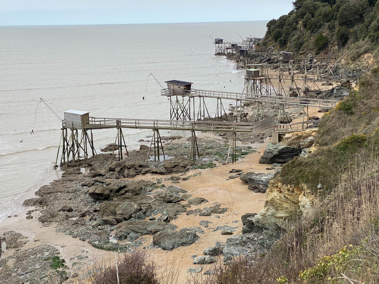 La marée ( horaires ) est montante depuis seulement deux heures et cela nous permet de nous diriger jusqu'à La Boutinardière en empruntant la plage, slalomer parmi les rochers et passer au pied des pêcheries nombreuses ici.