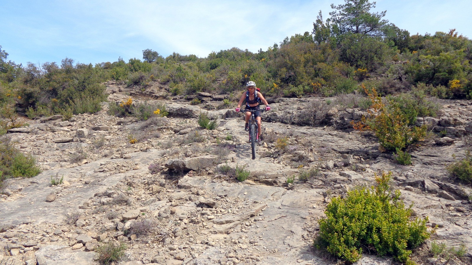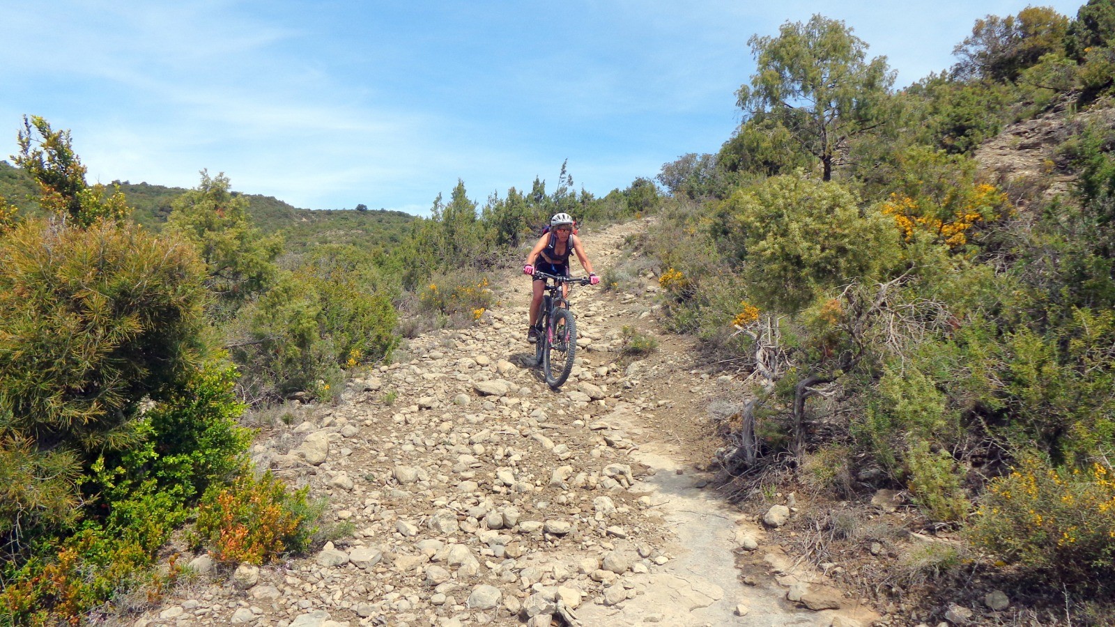 Un peu de piste et nous voilà sur Castillo de Hospitaled, un joli sentier plus technique avec quelques marches et passages délicats qui donnent la banane.