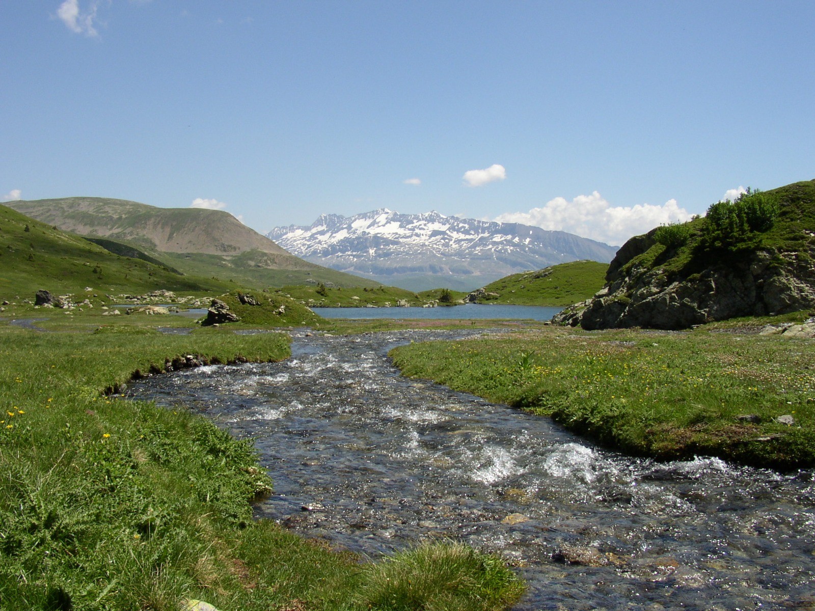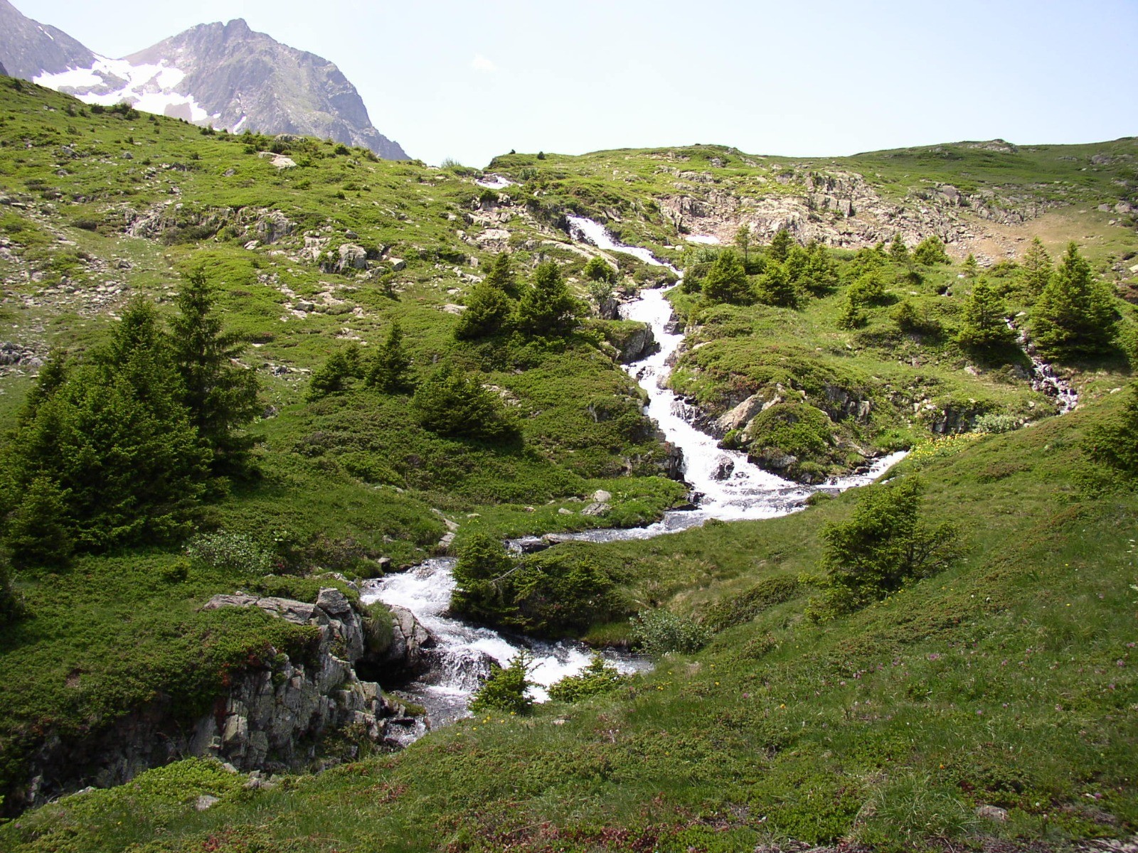 - l'eau : elle est présente un peu partout, mais le meilleur endroit est le torrent des lacs de La Jasse aux 2/3 du parcours (vous pouvez visiter les lacs hors circuit, ce qui rallongera la distance). Elle provient directement des névés du Taillefer. L'eau doit être filtrée pour devenir potable.