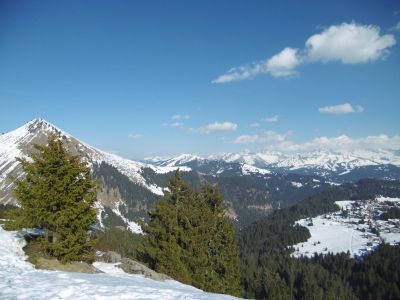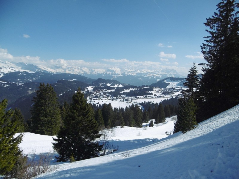 Départ Praz de Lys, rejoindre Les Molliettes, monter la Ramaz, continuer la montée vers le Chalet Blanc, reprendre le même chemin pour la descente et tourner à gauche avant le col de la Ramaz, et descendre vers Les Munes, continuer la descente jusque la cascade, rejoindre la piste de ski de Praz L'Evêque jusqu'au télésiège, en été il doit être possible de suivre le ruisseau jusque La Crotte. Tourner à droite et passer le Pont de La Crotte, et remonter vers Les Beuloz. rejoindre le centre de Praz de Lys