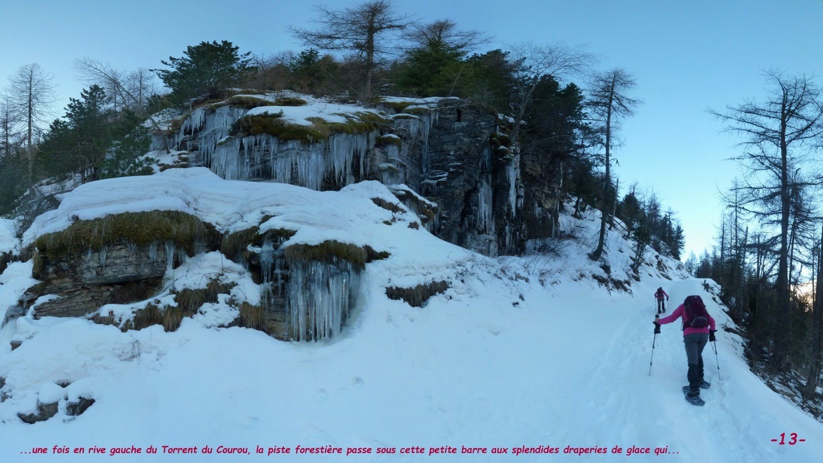 La Pointe de la Pourrachière, 2216 m, domine de seulement 43 m son col homonyme, 2173 m, beaucoup plus fréquenté. Ce modeste tripode, d'apparence peu attractive vu du Col de la Pourrachière, réserve pourtant au randonneur curieux un fantastique panorama sur la presque totalité du vaste et envoûtant Vallon de la Haute Rouanne et lui offre un parcours d'arêtes relativement effilées Nord-Ouest > Nord-Est (ou en sens inverse !) particulièrement esthétique qui ne peut que ravir le randonneur exigeant maître de sa technique. N'y étant jamais montés la montagne enneigée, le BRA affichant un risque faible de 2/5, nous sommes partis fleur au fusil à la découverte de cette traversée imaginée la veille. Vu le manque de neige sur la Piste de la Rouanne, nous avons pu monter jusqu'à Mercenari en Duster; ensuite, passé le goulet de Serre la Grange, nous avons vainement cherché la passerelle pourtant bien marquée sur Géoportail avant de nous résoudre à passer à gué sur des rochers glacés, grâce à nos raquettes particulièrement accrocheuses. Mais, arrivés sur la crête de Malaparré sur une neige croûtée parsemée de plaques de glace, nous avons jugé notre entreprise bien trop périlleuse et opté pour la descente de la large croupe de Malaparré, afin de profiter au maximum du panorama pour ensuite traverser tous les vallonnement du Serre du Clots des Naïs, pour rejoindre notre itinéraire initial. Mais là encore, quand la pente s'est accentuée en s'orientant plus à l'Ouest, la neige y était tellement glacée que même avec nos super-raquettes nous avons jugé bon de ne pas insister.