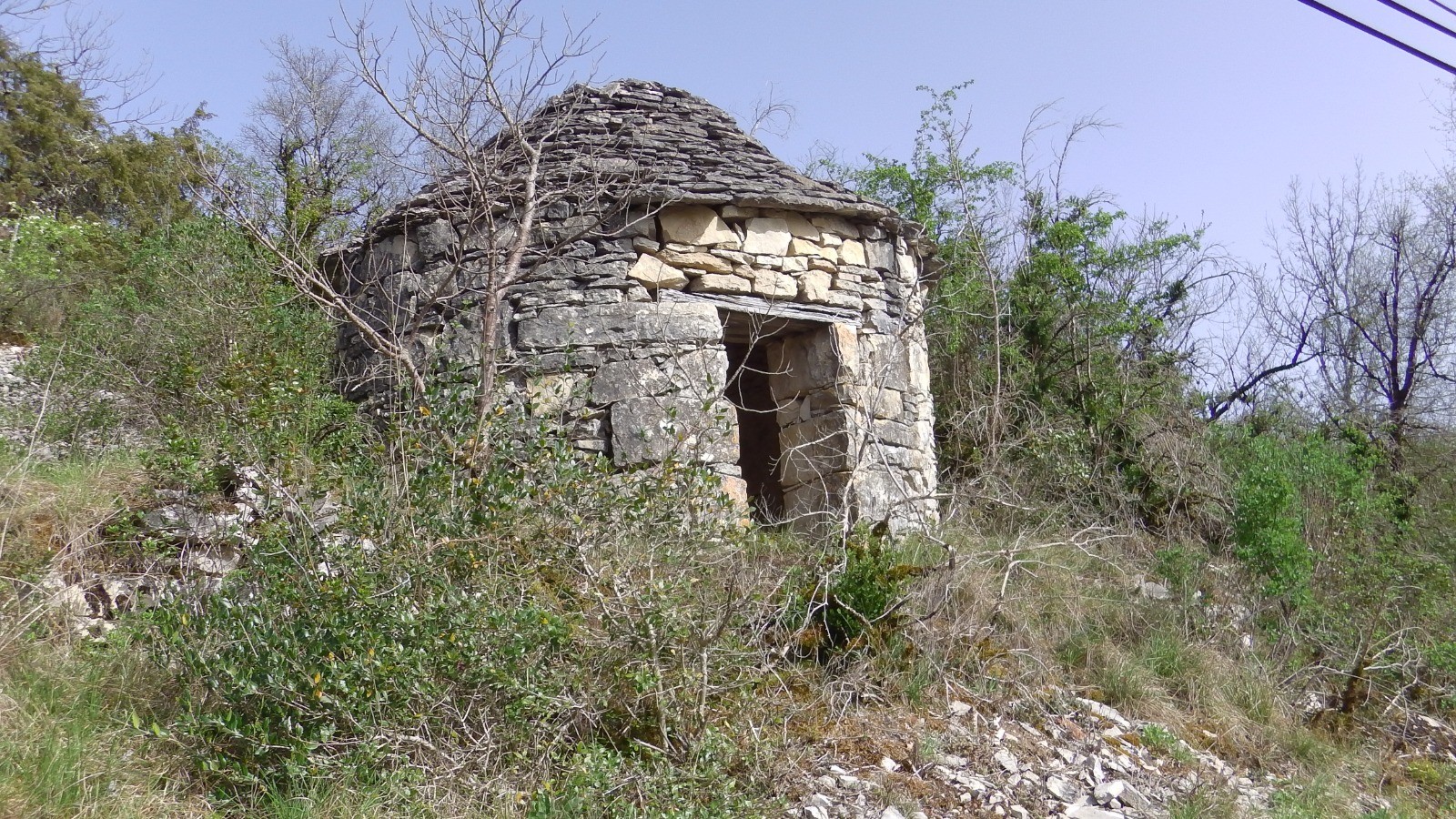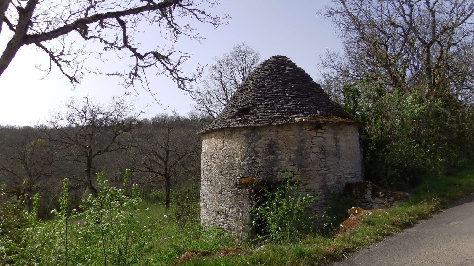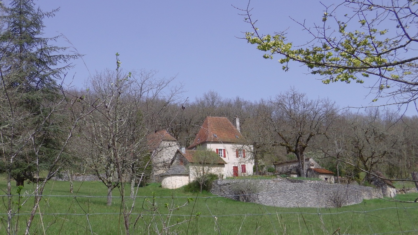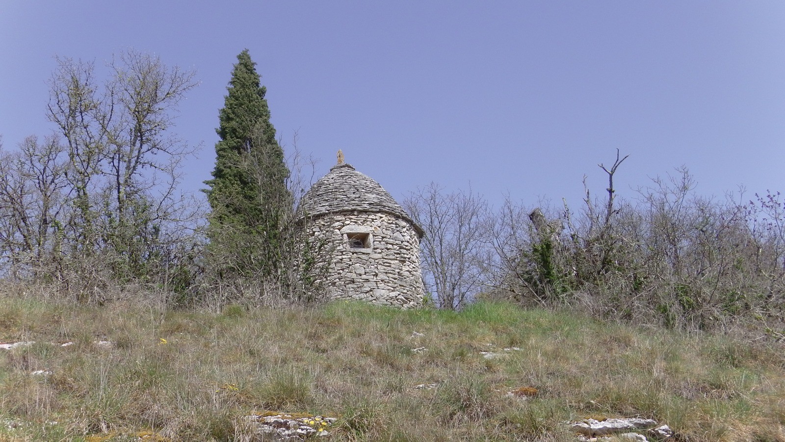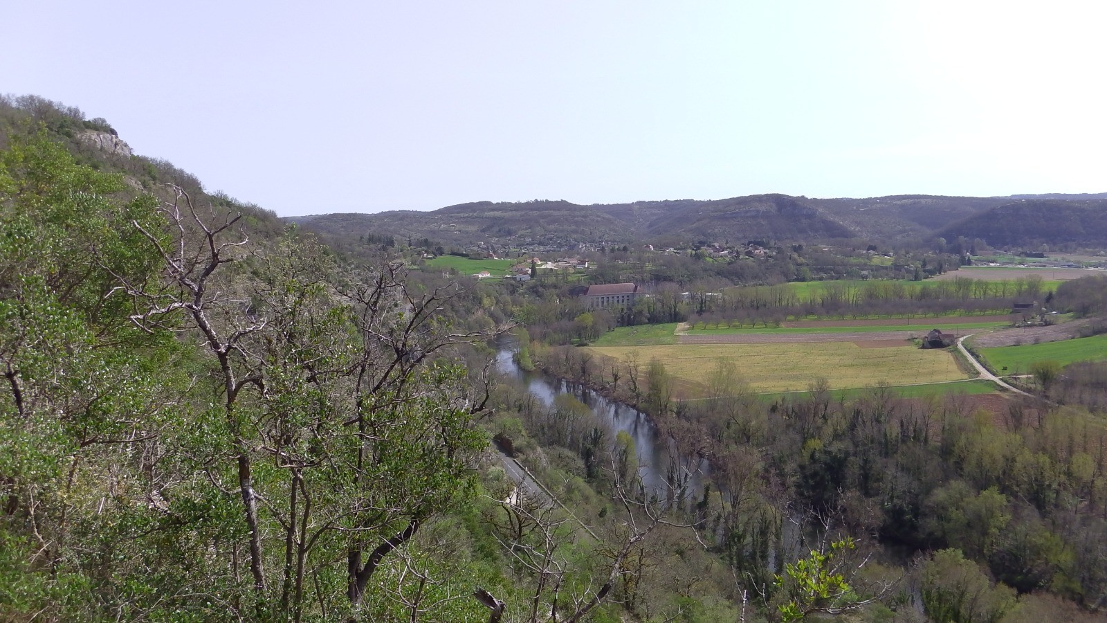 Au départ on monte sur la falaise qui domine l'usine électrique, on arrive sur la route de Cahors (belle petite croix encadrée par 4 pierres plates) prendre le chemin de droite qui remonte un vallon puis grimpe vers le plateau, passe devant une belle fontaine puis sous ce qui ressemble à une gariotte mais qui est une casemate en béton habillé de pierres. Ces casemate servait à garder le domaine d'un ancien président de la république ... A la route (nouvelle casemate ), prendre en face une chemin qui descend dans un beau vallon. Au bas prendre à droite un sentier, puis à droite un sentier balisé en jaune qui remonte sur le plateau (beau petit cirque rocheux en haut) et qui débouche sur une route. Prendre à gauche et en haut de la cote un chemin qui part sur la droite, le suivre en restant à gauche pour arriver à Sauzet. Suivre la route et rencontrez le Gr , Suivre le Gr sous les falaises puis l'abandonner pour un sentier qui monte vers le haut de la falaise (assez rude) continuer sur le plateau et prendre à gauche la route sur laquelle on débouche, route (un peu longue) qui ramène à l'endroit où le petit chemin emprunté au départ la coupe , prendre à gauche et retrouver la chapelle .