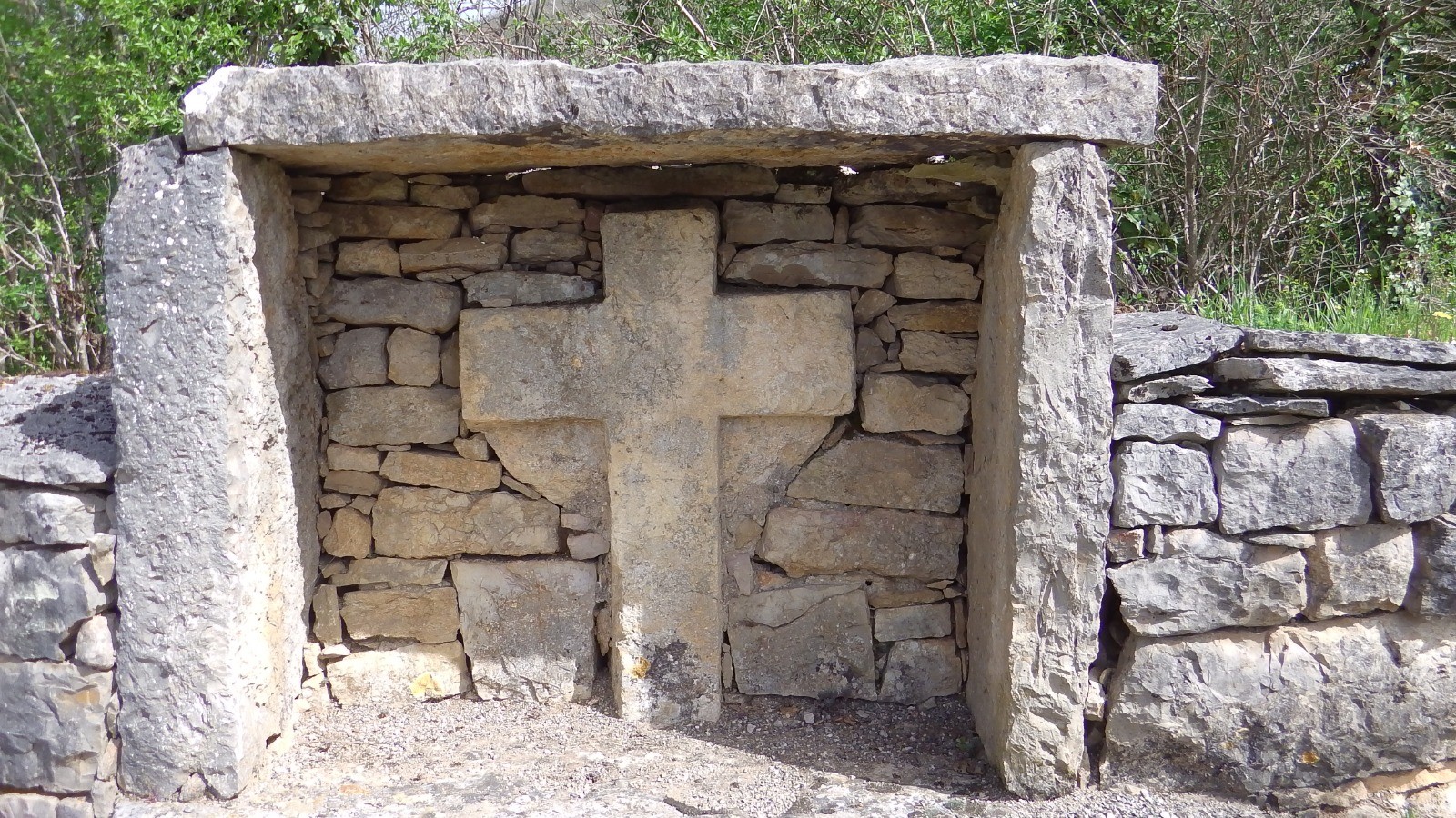 Partir en face de la chapelle sur un sentier qui monte sur le grand mur. Pas de balisage spécifique.