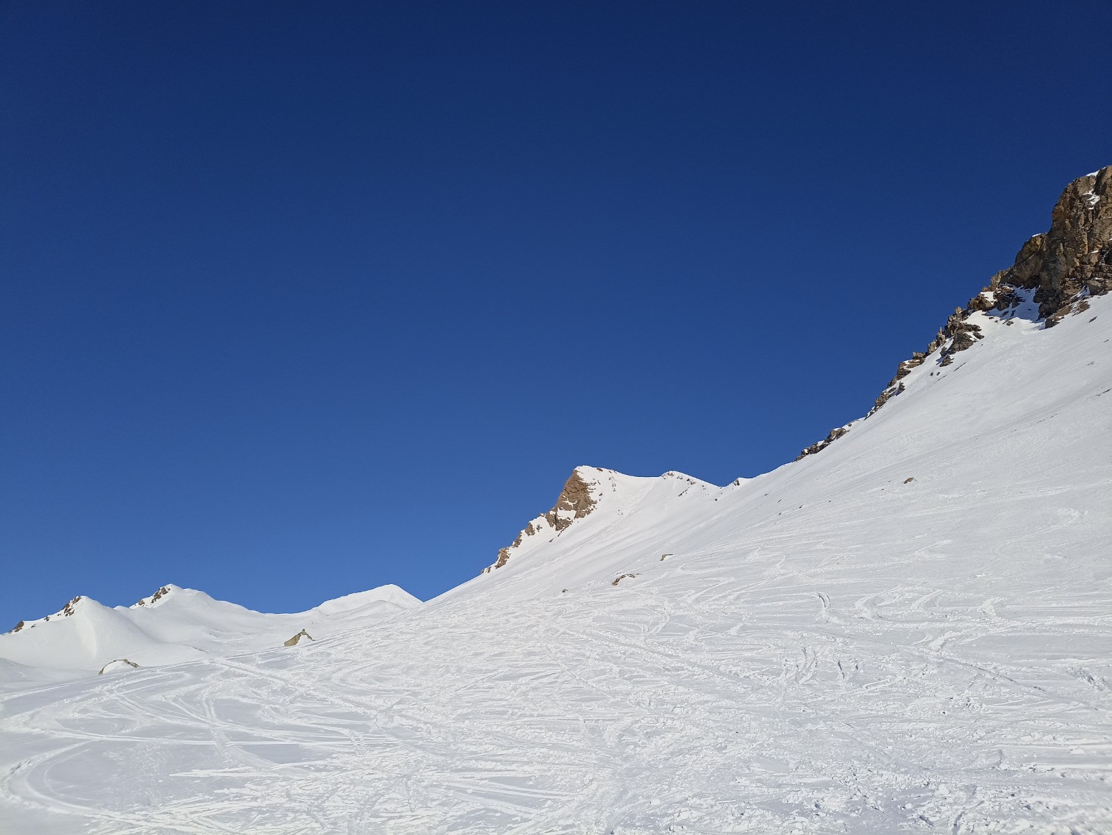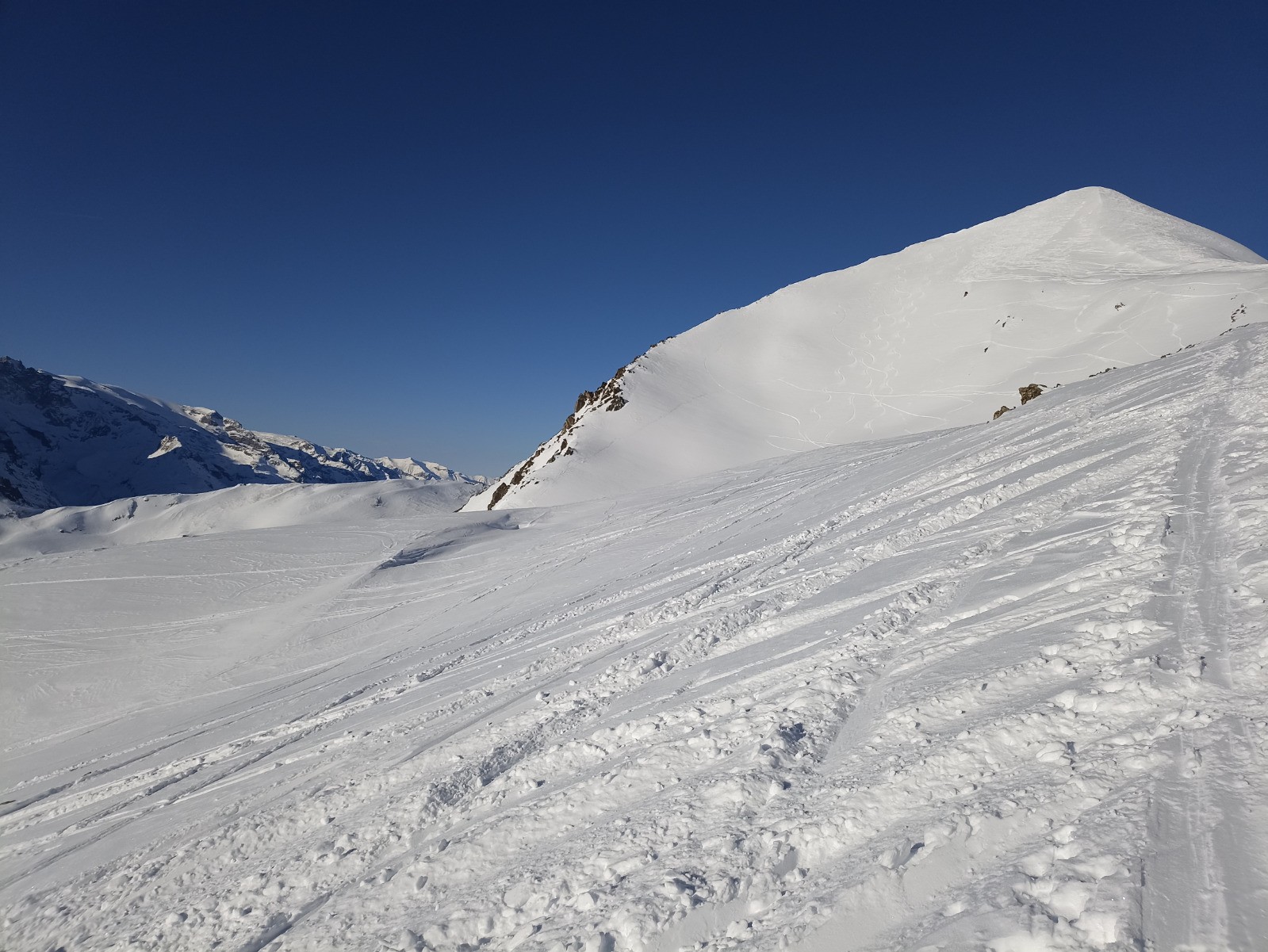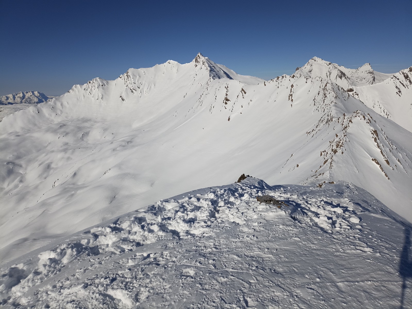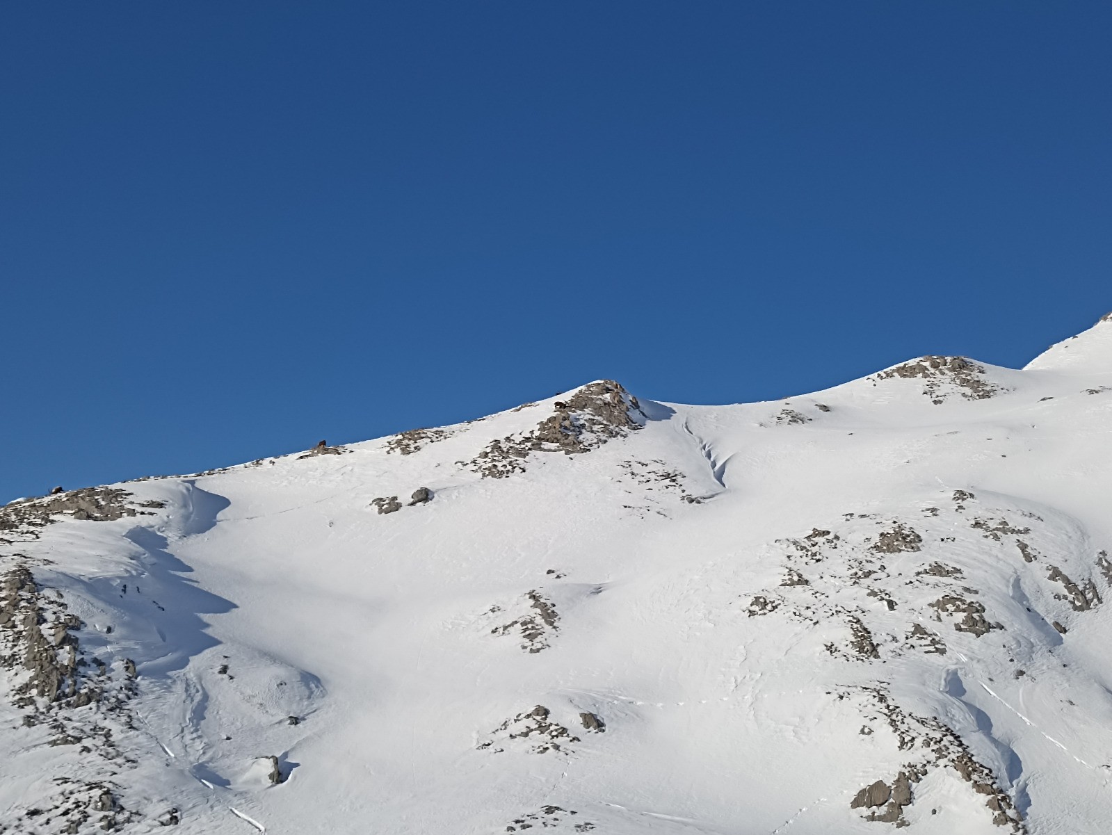 Un départ assez tôt m'a permis de croiser dans la montée un renard des neiges et 4 bouquetins.