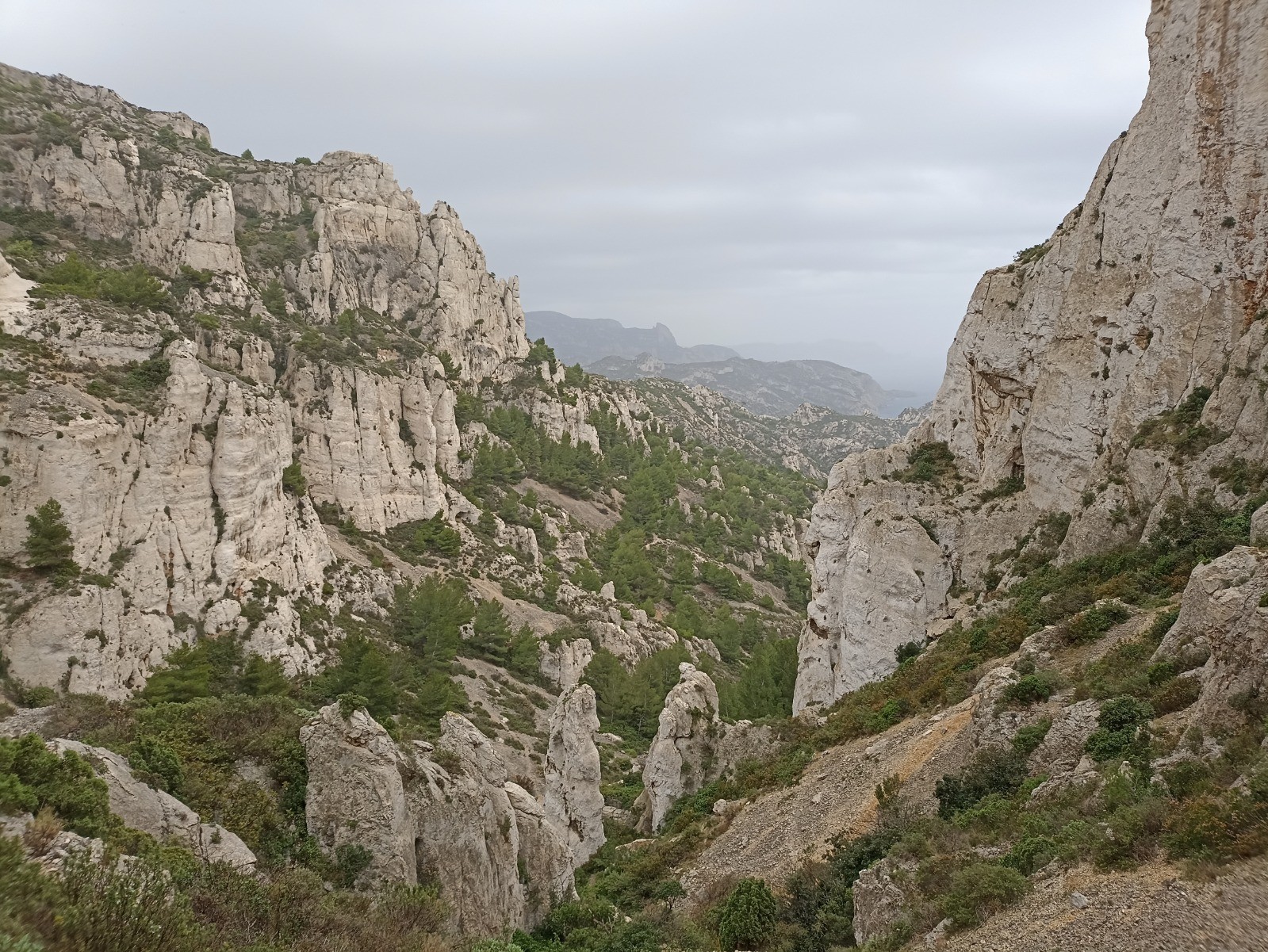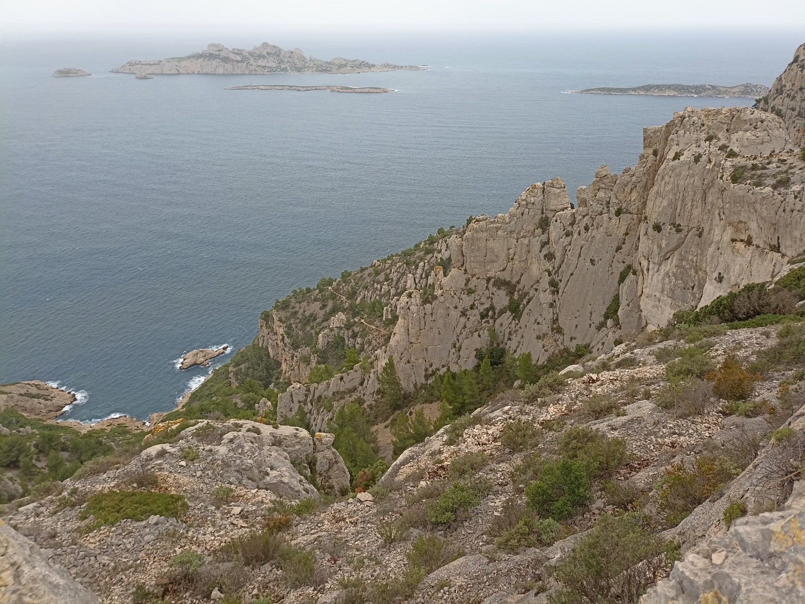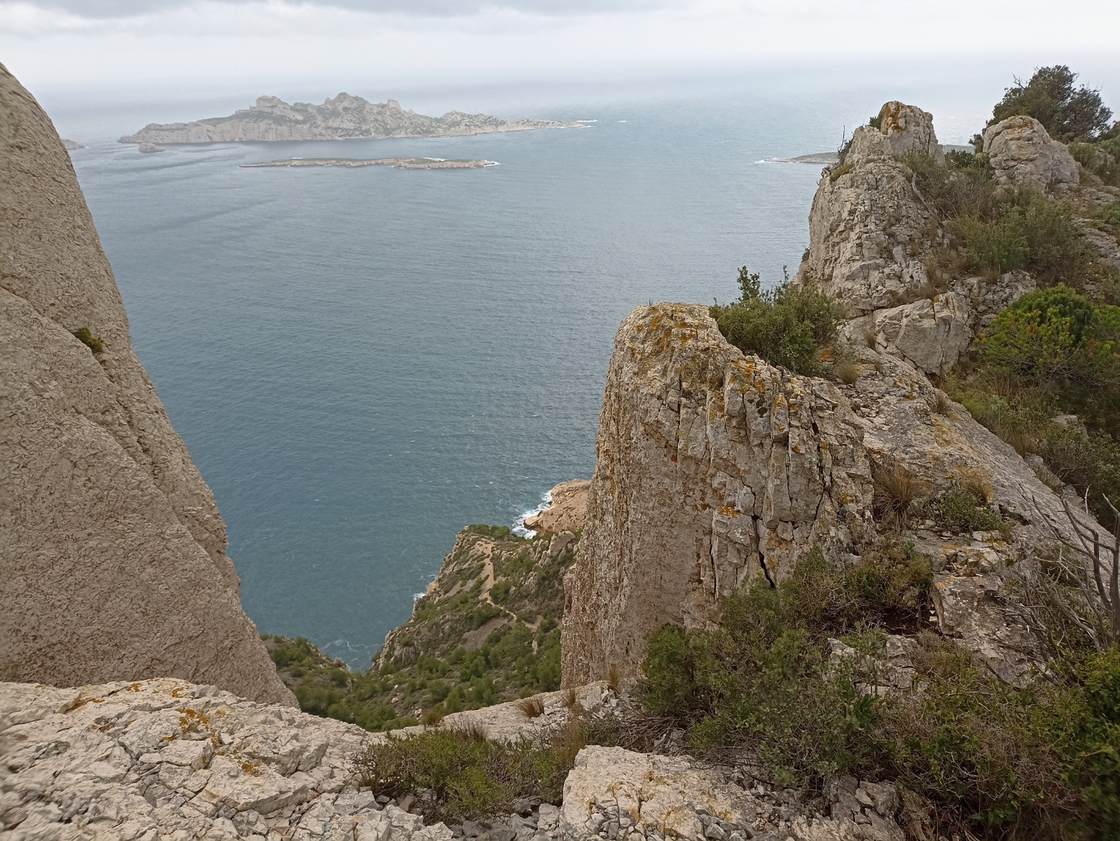 Passage très difficile pour sortir du Cirque. Une corde est en place pour vous aider au cheminement. Par temps de pluie. Eviter cette randonnée. Autrement si vous avez le pied sur. C'est une belle randonnée avec des vues magnifiques sur les Calanques et l'ensemble du massif.